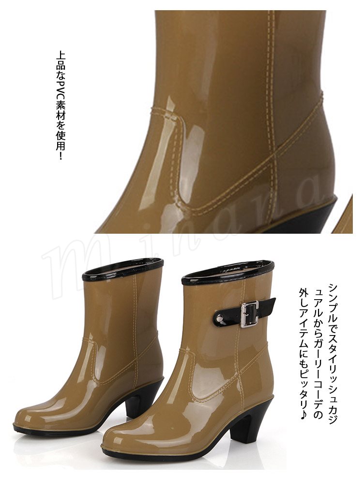 | 雨の日もオシャレにカッコよくキメる♪ 雨・晴れ兼用なオシャレレインブーツ。 ヒールタイプにサイドベルトのデザインで、オシャレでエレガントな雰囲気に♪ コーディネートに馴染みやすく、スカートにも、パンツにもブーツインしてスタイリッシュに履けます。 | |
