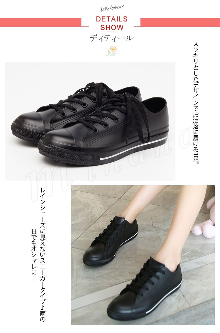 | 雨の日もオシャレに!!当店人気オリジナルレインスニーカー新作登場! 見た目は普通のローカットスニーカー。でも雨の日もうれしい防水タイプ。 シンプルでどんなコーディネートにも合わせやすいおすすめアイテムです。 | |