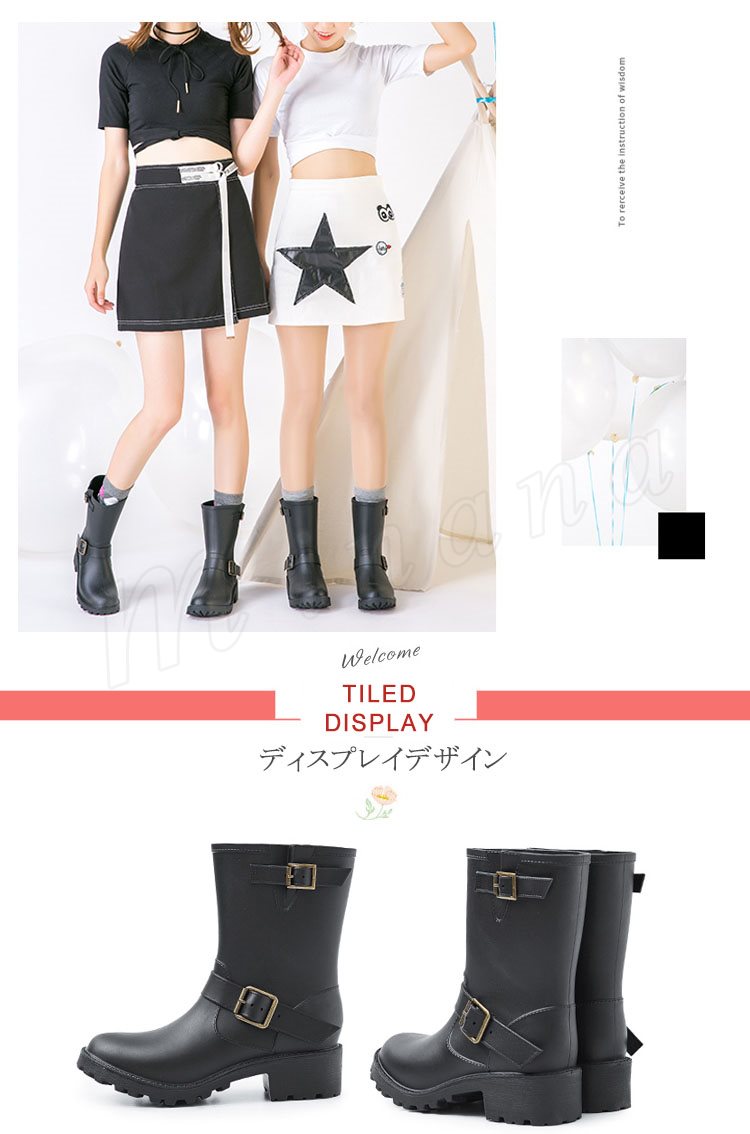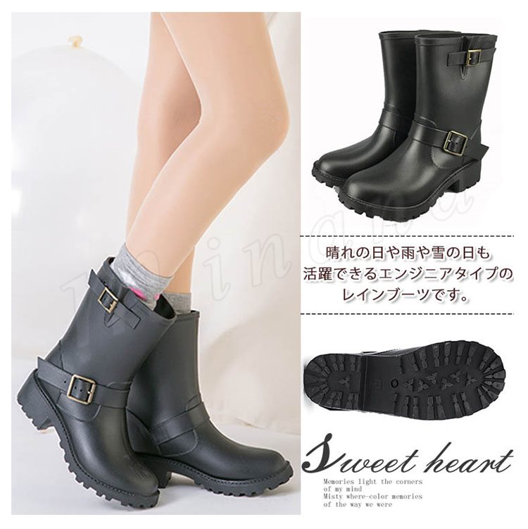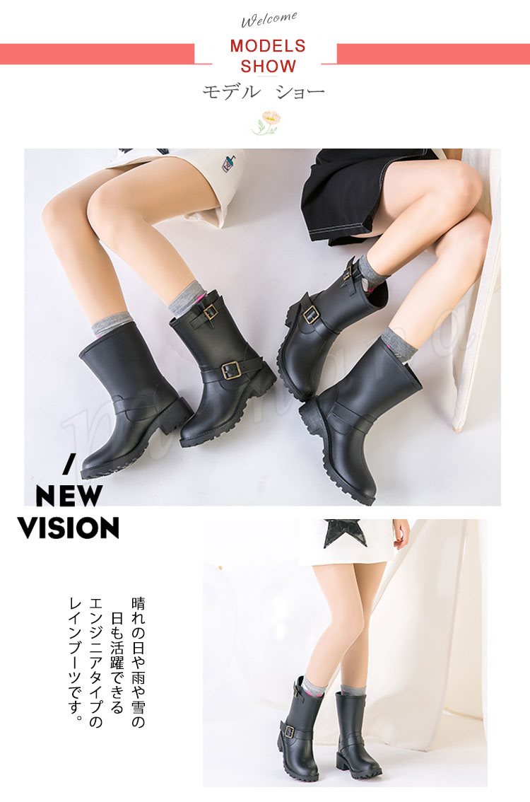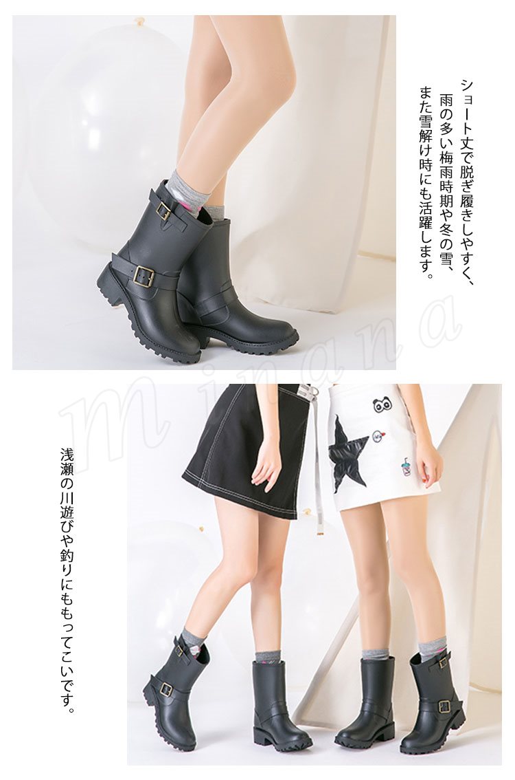 レインシューズ レディース ショート丈 ミドル丈 レインブーツ エンジニアブーツ レディース 長靴 雨靴 ショートブーツ エンジニア レインブーツ 長