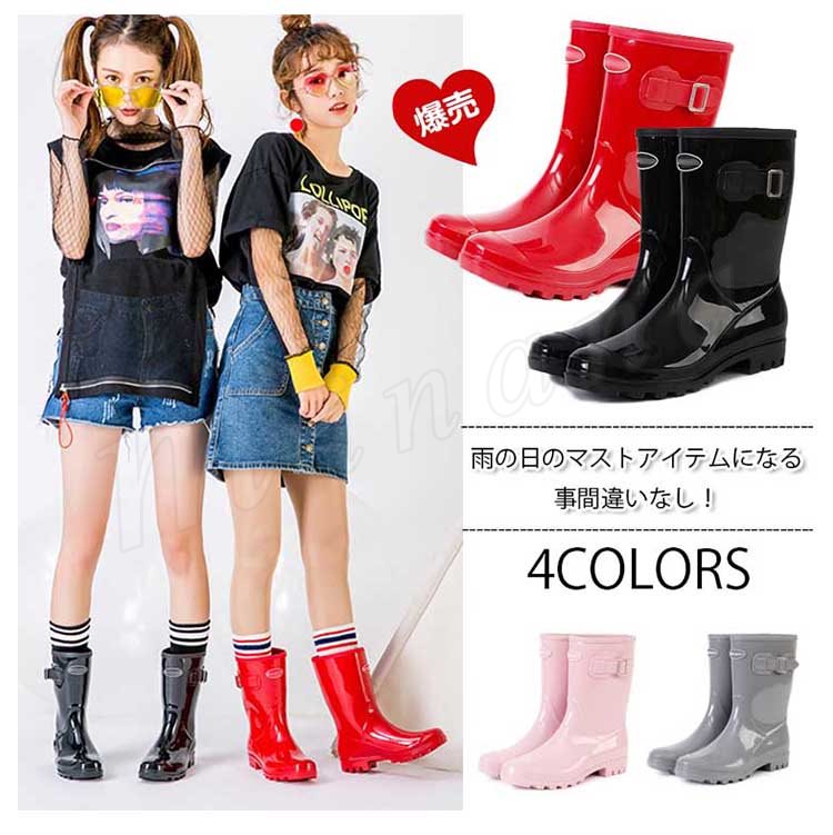 レインブーツ レディース ミドル丈 スノーブーツ 長靴 雨靴 レインシューズ ショート丈 ショートブーツ 梅雨 豪雨 自転車 通勤 台風 アウトドア