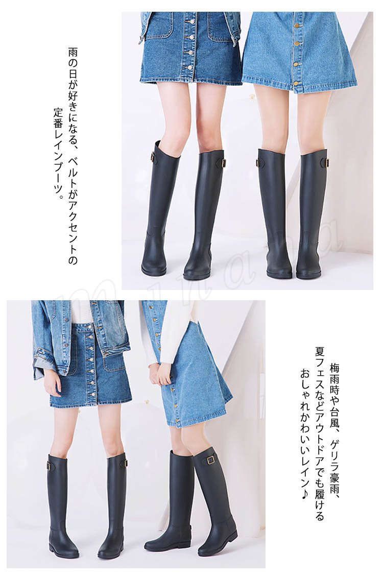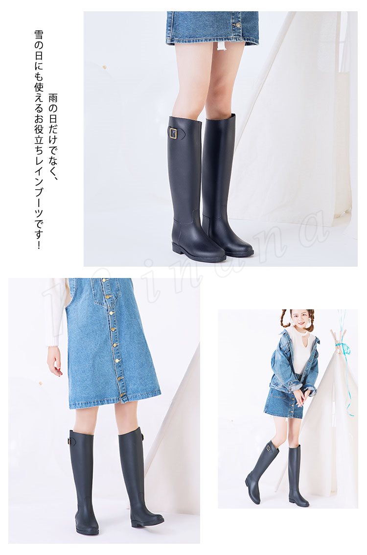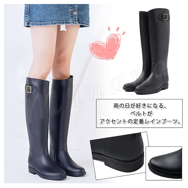 ベルト付 ロング丈 レインシューズ レインブーツ 雨靴 長靴 スノーブーツ ロング ブーツ 梅雨 豪雨 自転車 通勤 台風 アウトドア