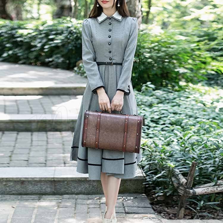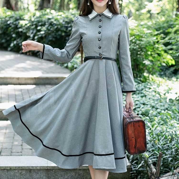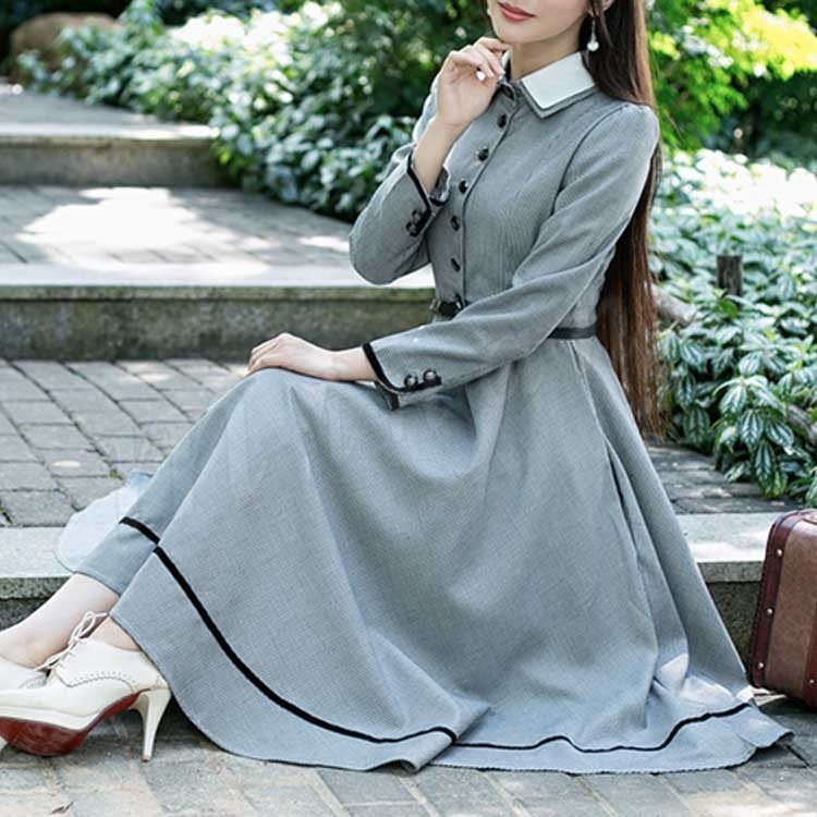 英国のお嬢様が着ているクラシック一品。ワンピース マキシワンピース ロングワンピース ロングドレス 千鳥格 トレロ マキシ 長袖 クラシッ Z