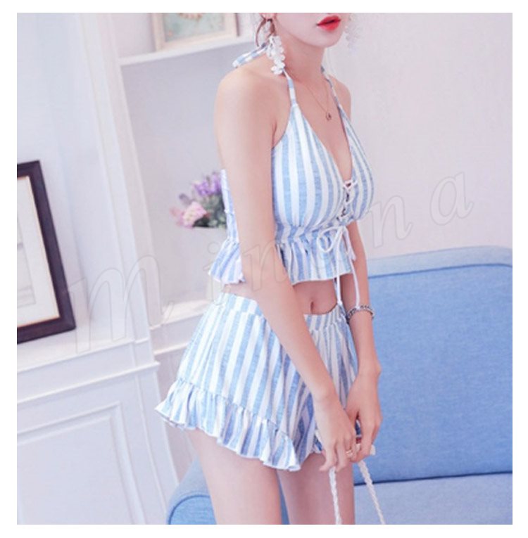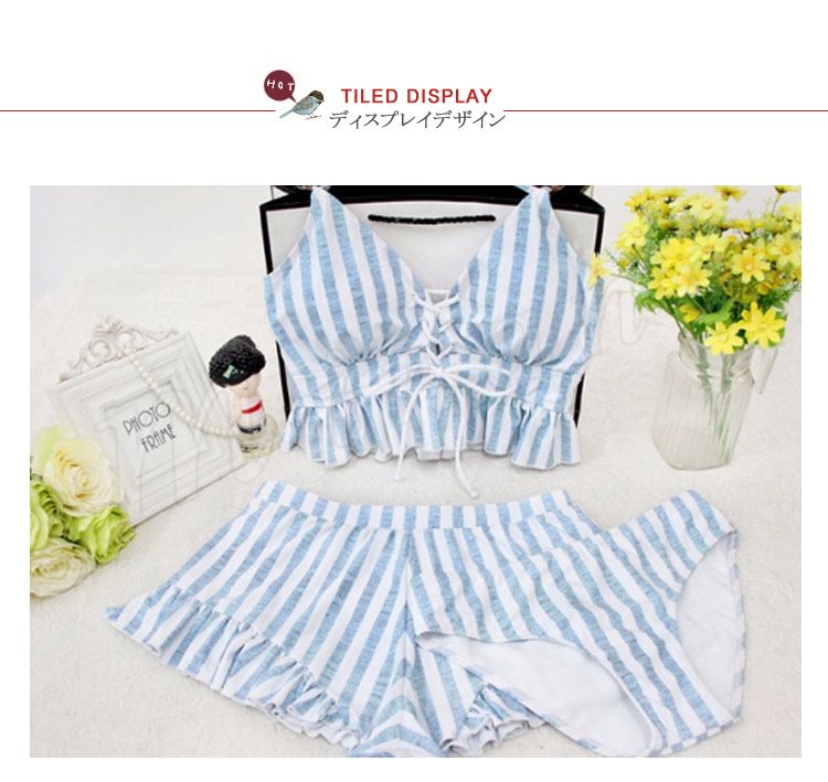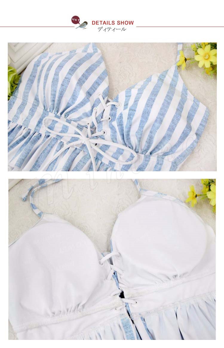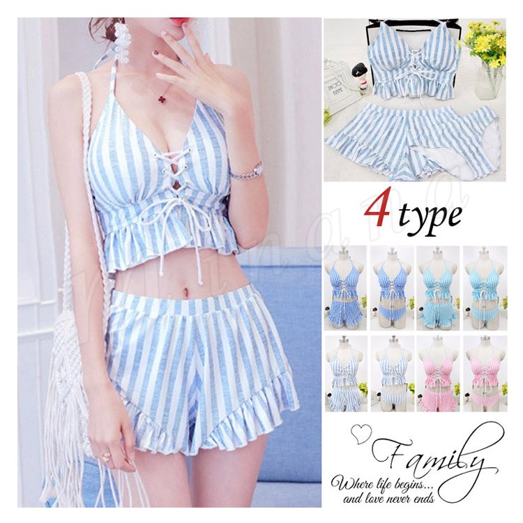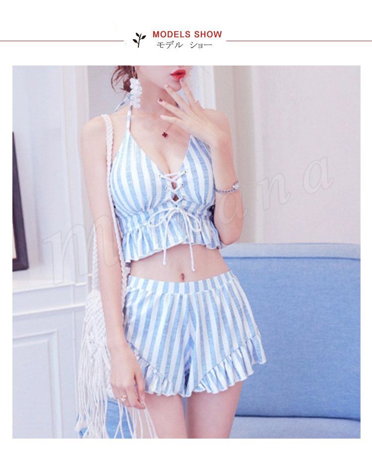 水着レディース 体型カバー 3点セット水着 タンキニ ストライプ ビキニ 水着 ショートパンツ セパレート 水着 スイムウェア 女性用 ママ可愛い 海