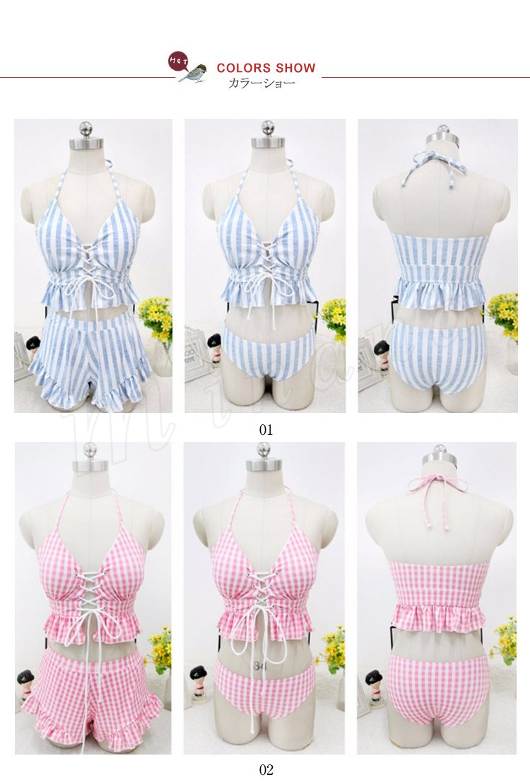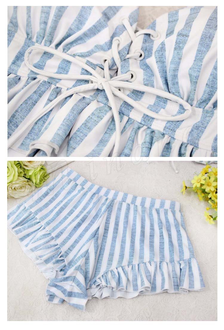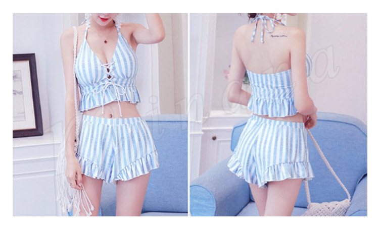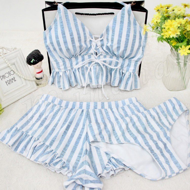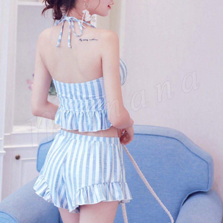 水着レディース 体型カバー 3点セット水着 タンキニ ストライプ ビキニ 水着 ショートパンツ セパレート 水着 スイムウェア 女性用 ママ可愛い 海