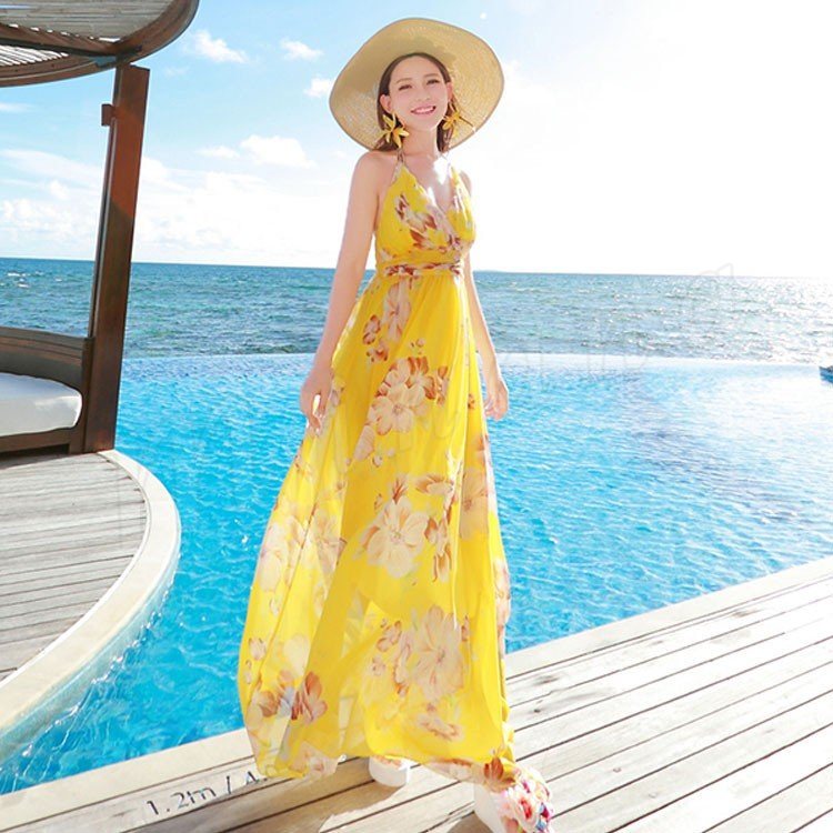 総花柄で雰囲気が一気に明るくなる、華やかな1枚。リゾートワンピ 夏ワンピース 夏ワンピ 花柄 ワンピース 夏 シフォン マキシワンピース マキ