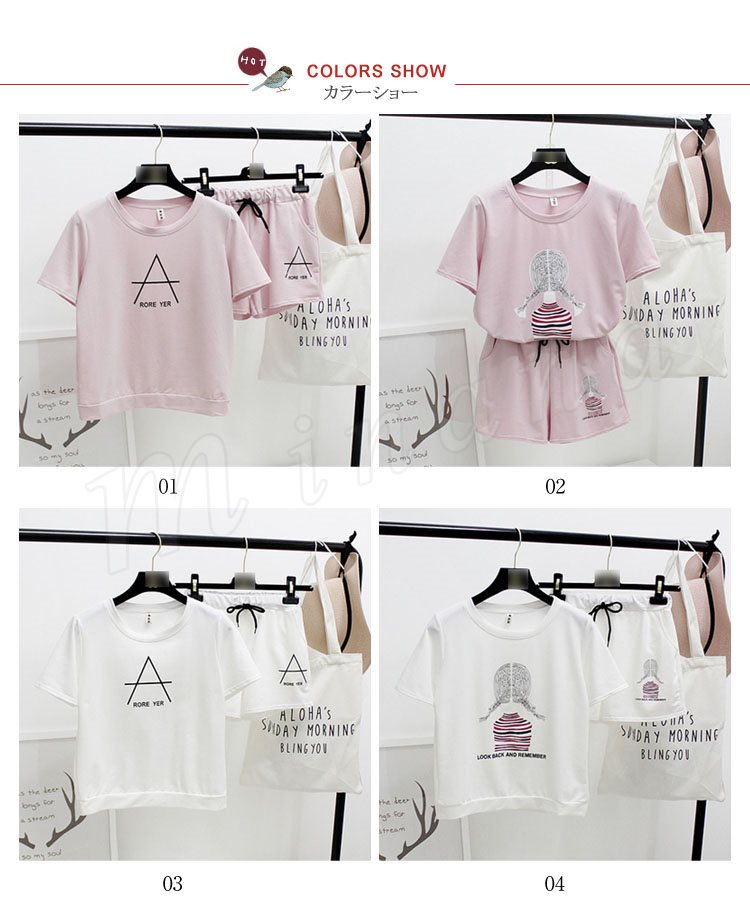 ルームウェア シンプルトップス&パンツセット 半袖 ショートパンツ スポーツウェア