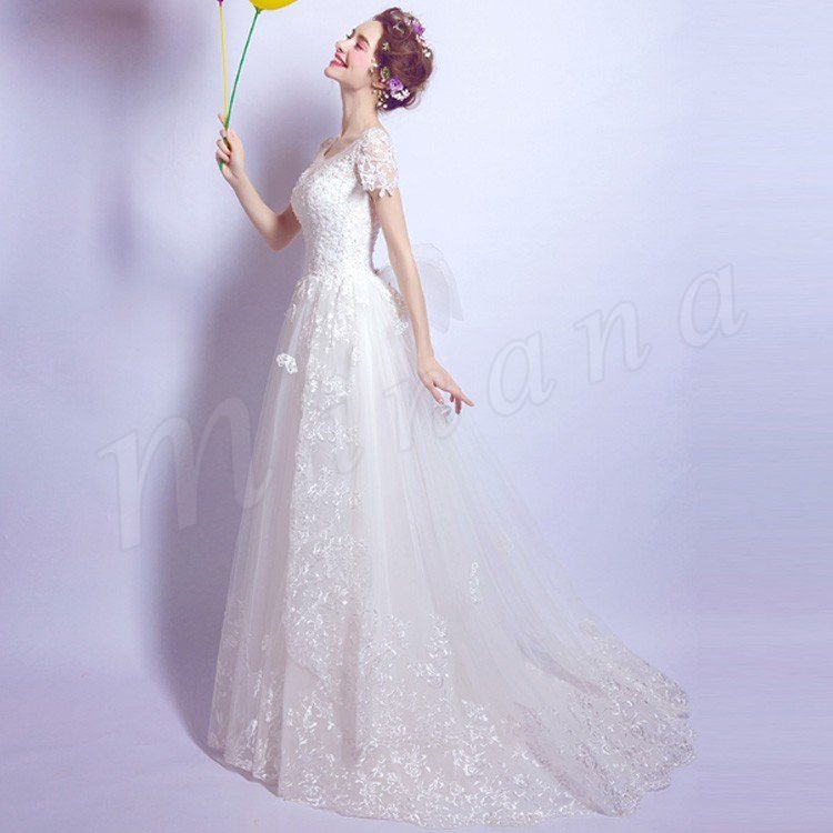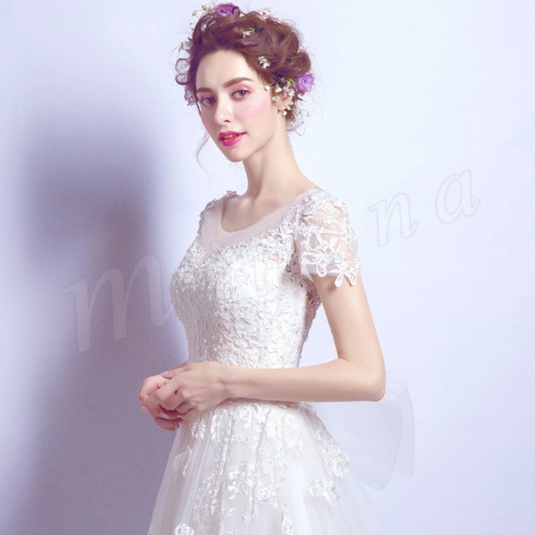 テーリング花嫁 ウェディングドレス レースドレス ブライダルドレス フォーマルドレス トレーンドレス 大きいサイズ 締上げタイプ ウェディング