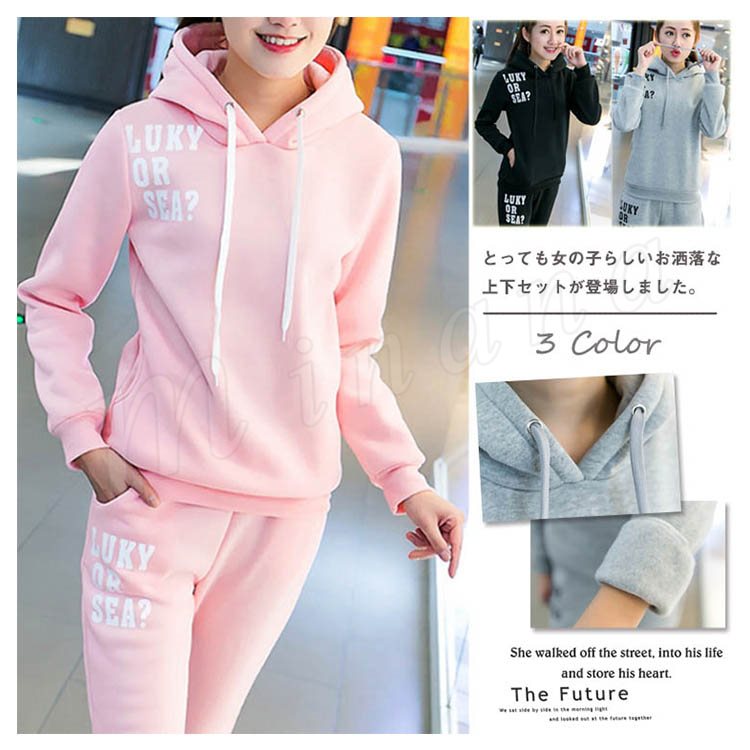 上下セット スウェットセット レディース スポーツウェア プルオーバー ロングパンツ プリントパーカー 厚手パーカー カジュアルウェア