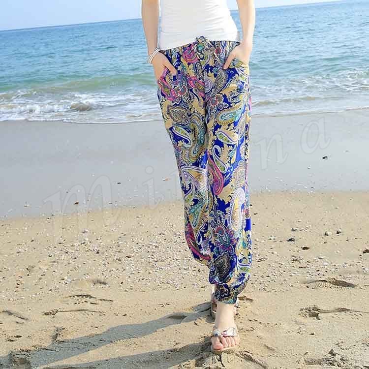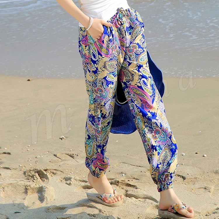 サルエルパンツ アラビアンパンツ ウエストゴム ボトムス レディース 大きいサイズ ウエストゴム ボタニカル 美尻 薄手 ロング丈 ボヘミア風