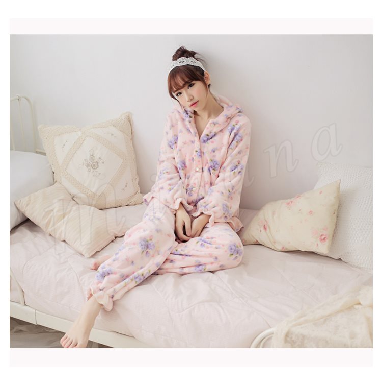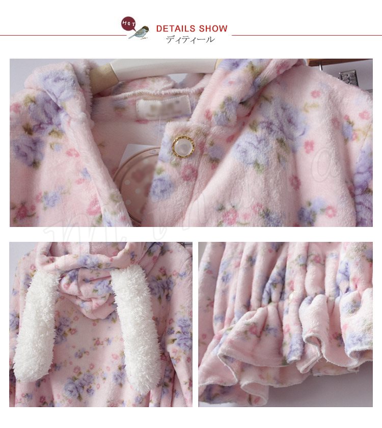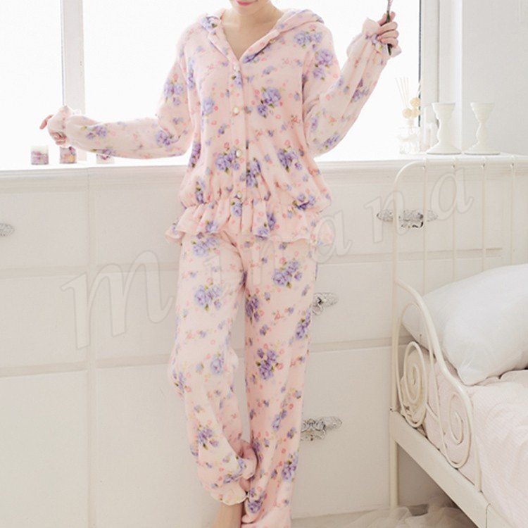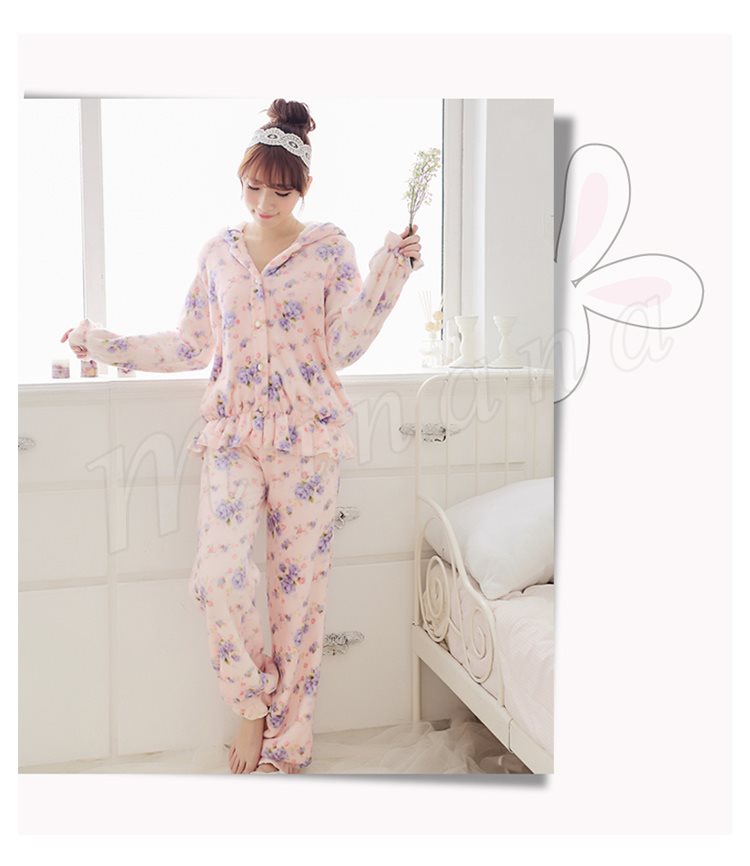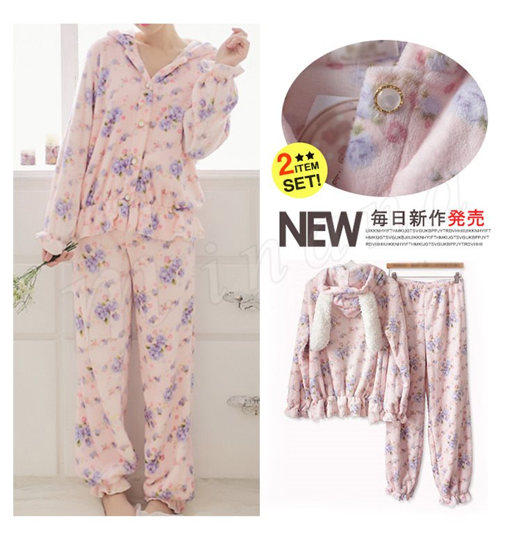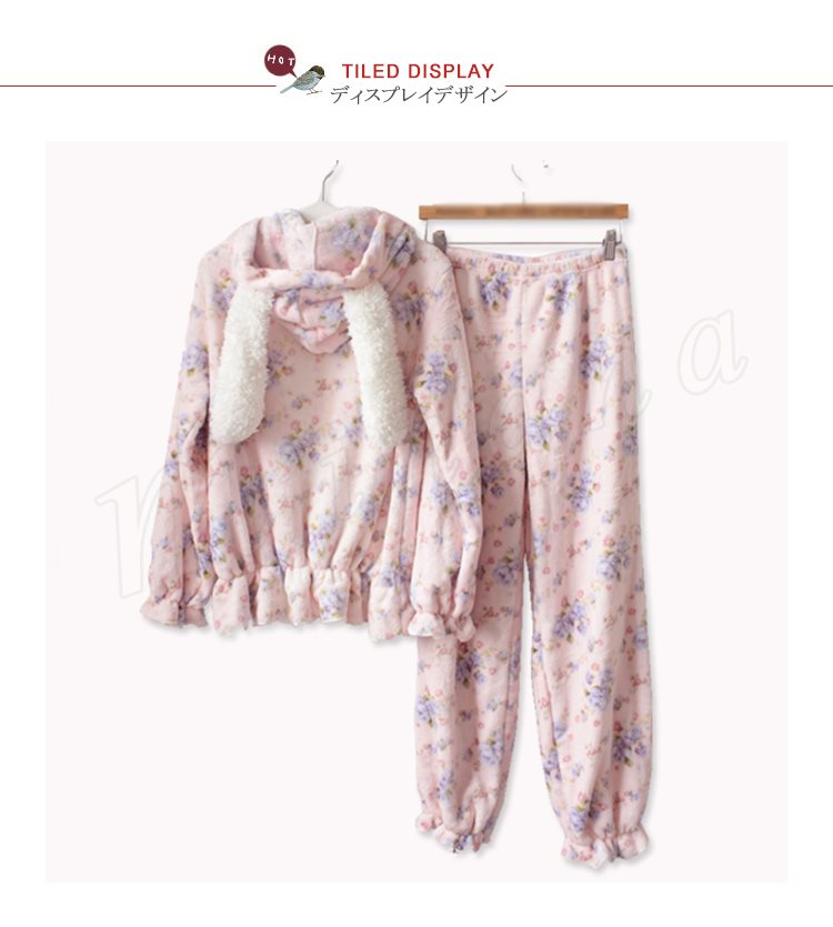 可愛い ルームウェア 2点セット もこもこ パジャマ モコモコ ルームウェア 上下セット レディース 花柄 フラワー フリース ルームウエア