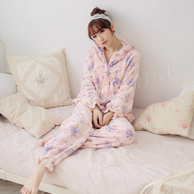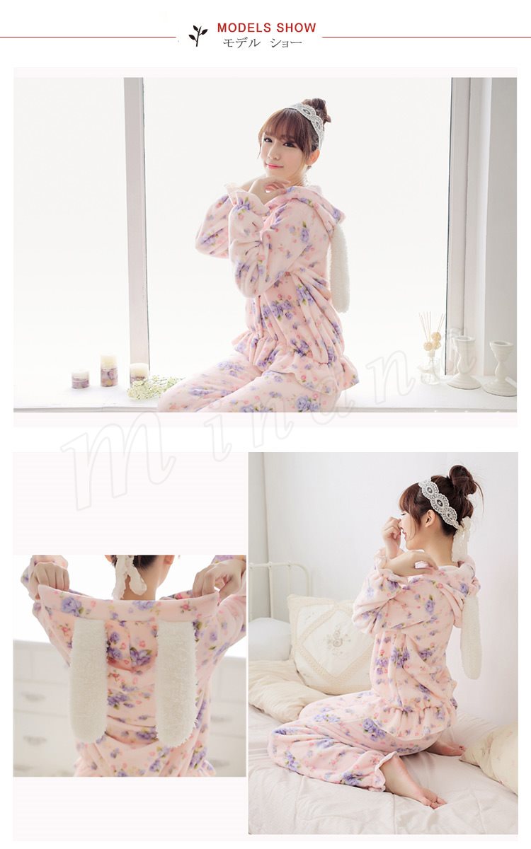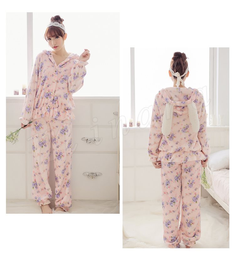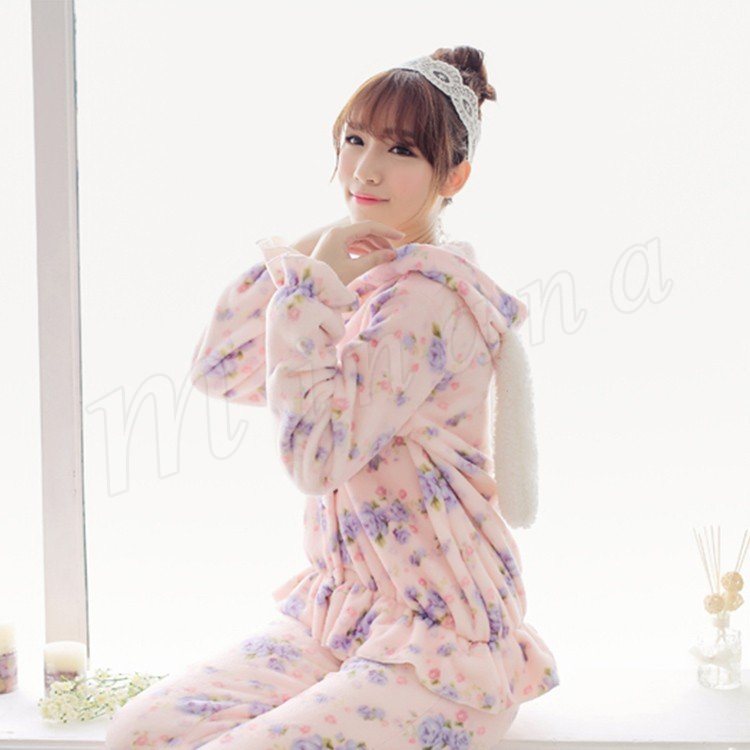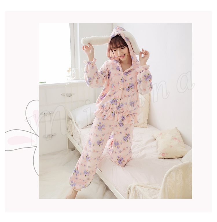 可愛い ルームウェア 2点セット もこもこ パジャマ モコモコ ルームウェア 上下セット レディース 花柄 フラワー フリース ルームウエア