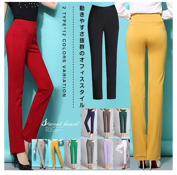 ストレートパンツ ストレッチ パンツ 9分丈 10分丈 ビジネス パンツ ストレッチ スーツパンツ 通勤 フォーマル レディース ビジネス O