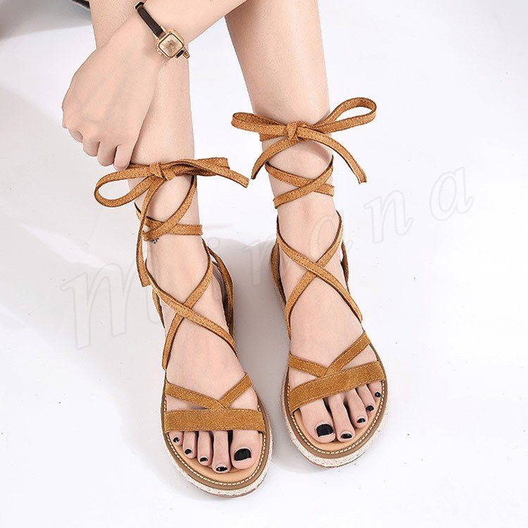 大きサイズアリ 注目度NO.1!編み上げサンダル レースアップサンダル レディースサンダル レースアップ レース編み サンダル フラットサンダ