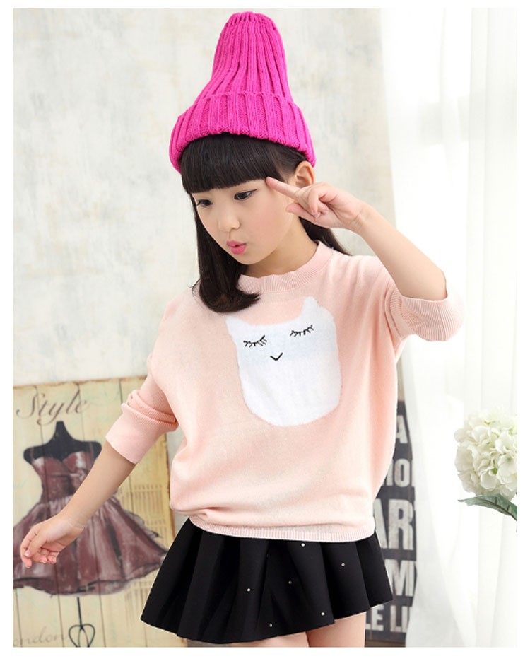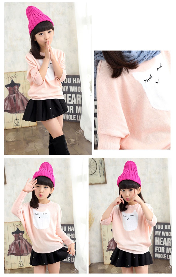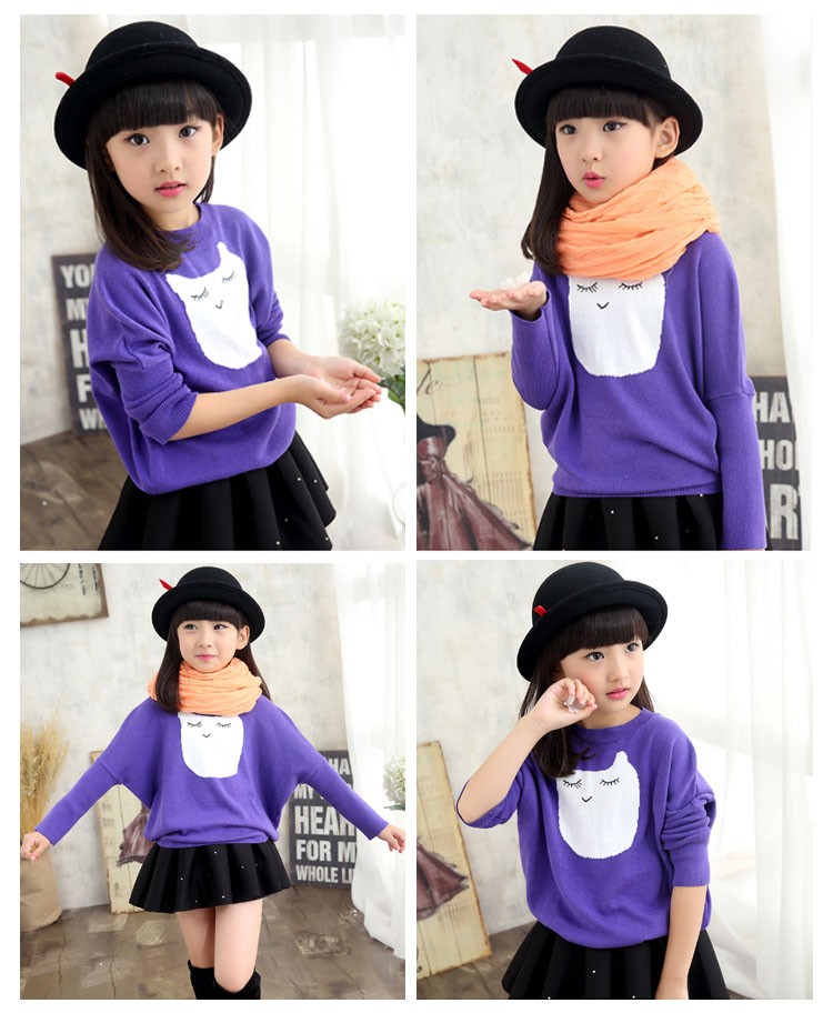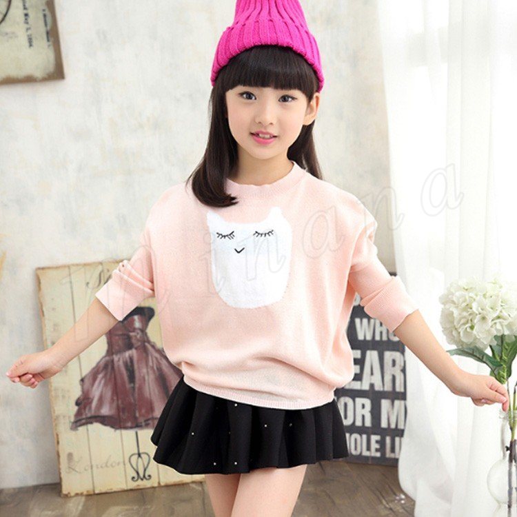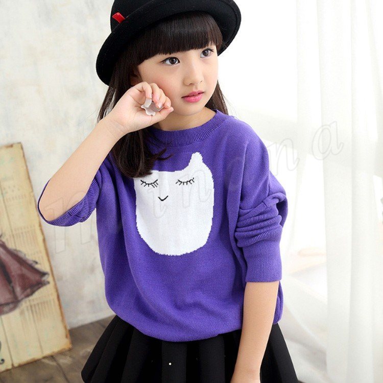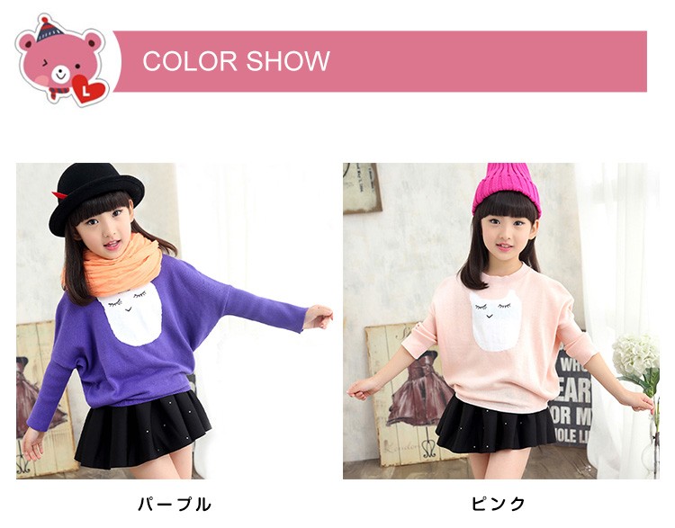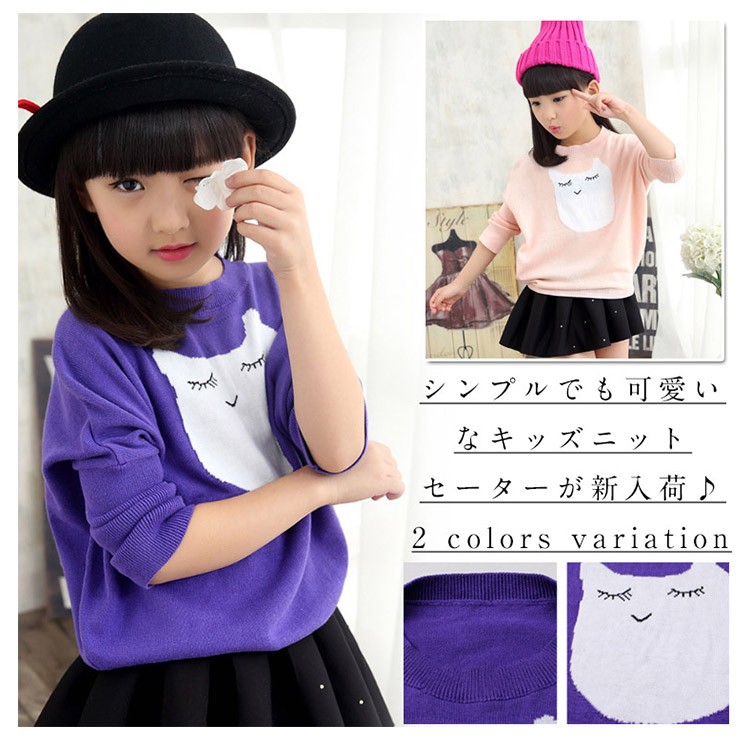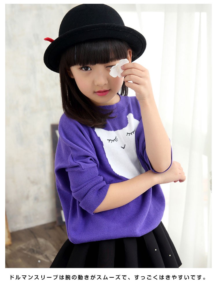 シンプルでも可愛いなキッズニットセーター 女の子フード付き長袖ニット ガールズ クールネック ドルマンスリーブ プルオーバー ニコニコ笑顔 キ