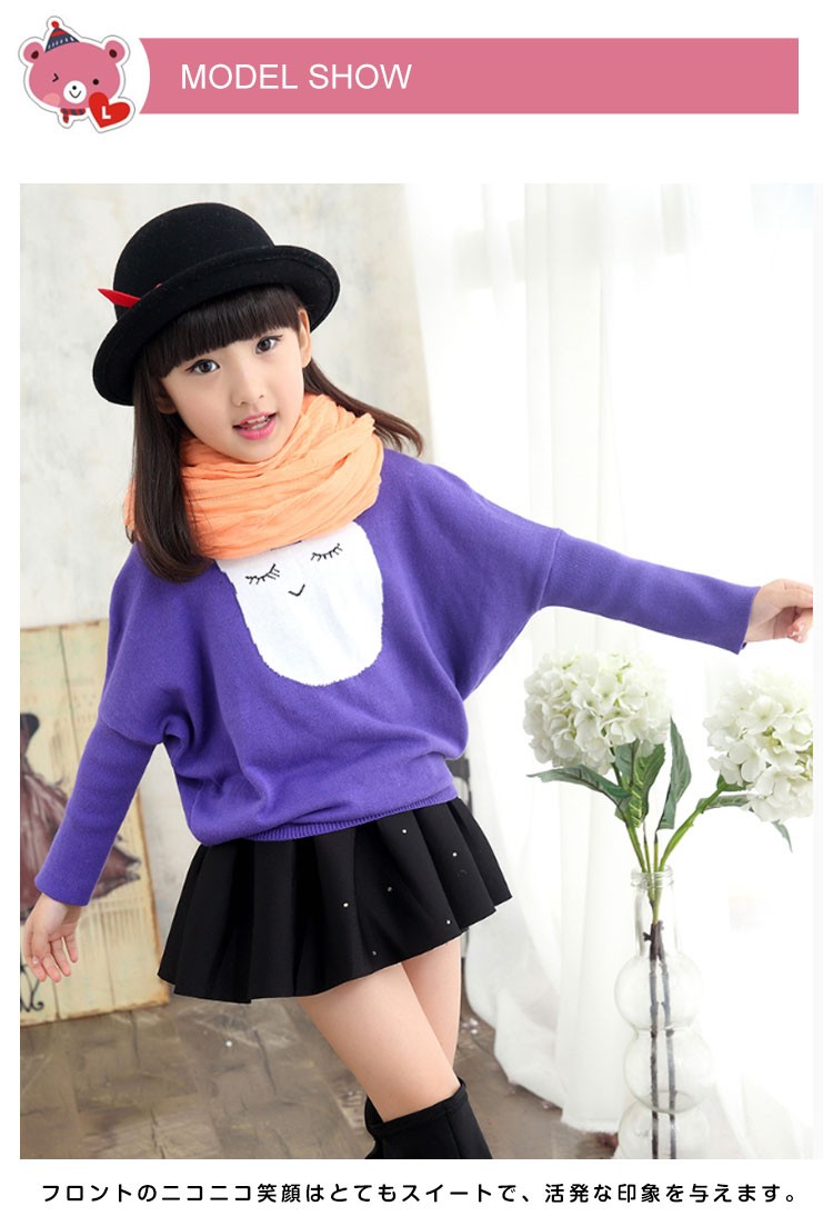 | シンプルでも可愛いなキッズニットセーターが新入荷♪ フロントのニコニコ笑顔はとてもスイートで、活発な印象を与えます。 ドルマンスリーブは腕の動きがスムーズで、すっごくはきやすいです。 ゆったりとして、スイート満点な一着です。 | |