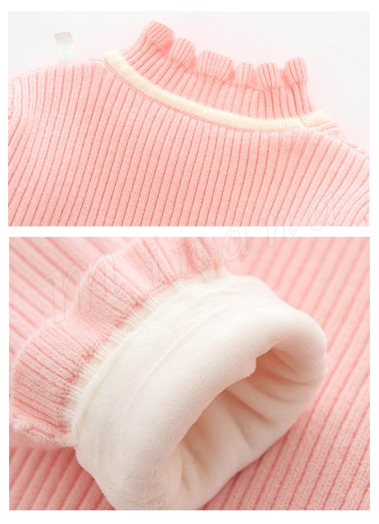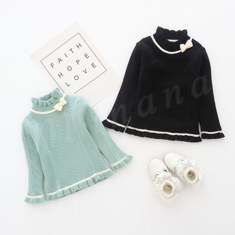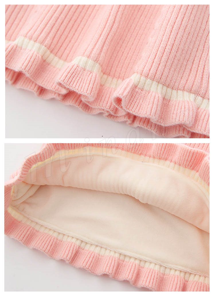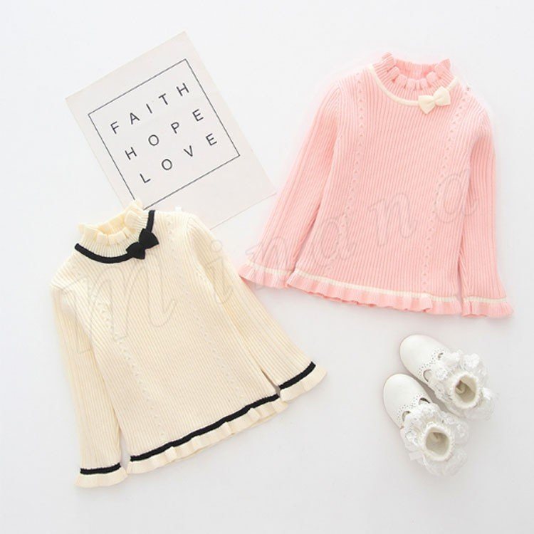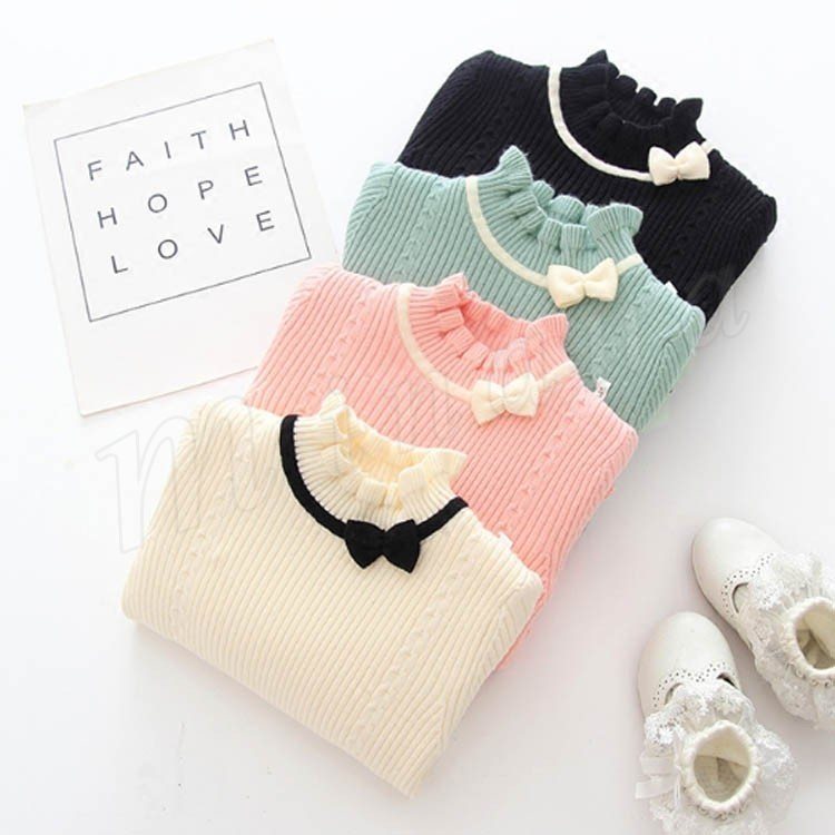 ネック、袖口、裾にはラインを入れて全体を引き締めたニットセーター 女の子ニットセーター 子供服 ベビー服 プルオーバー 配色 フリル リボン
