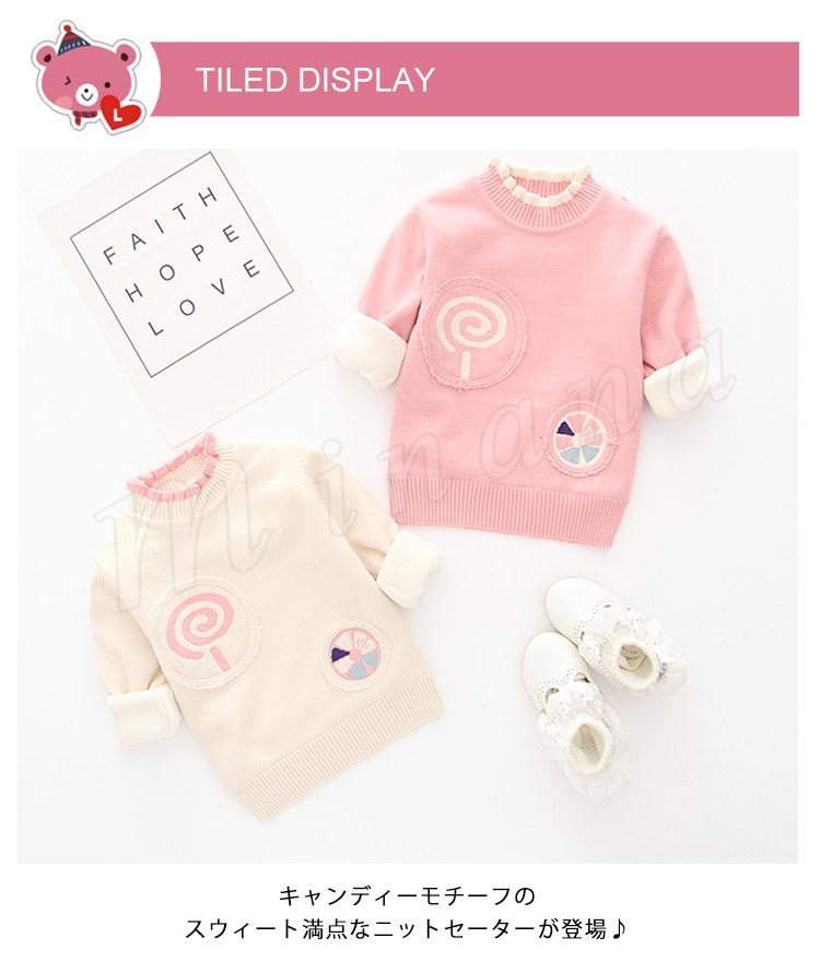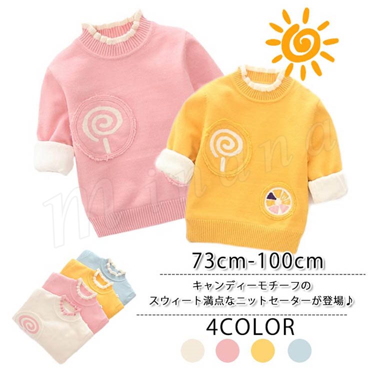 キャンディーモチーフのスウィート満点なニットセーターが登場♪ 女の子ニットセーター 子供服 ベビー服 プルオーバー 配色 フリル 可愛い スマ