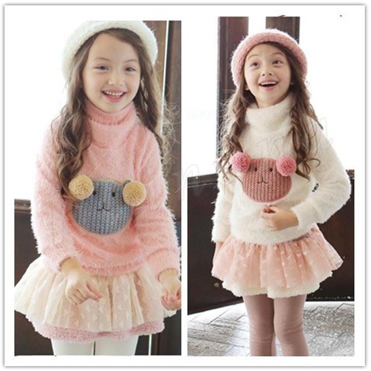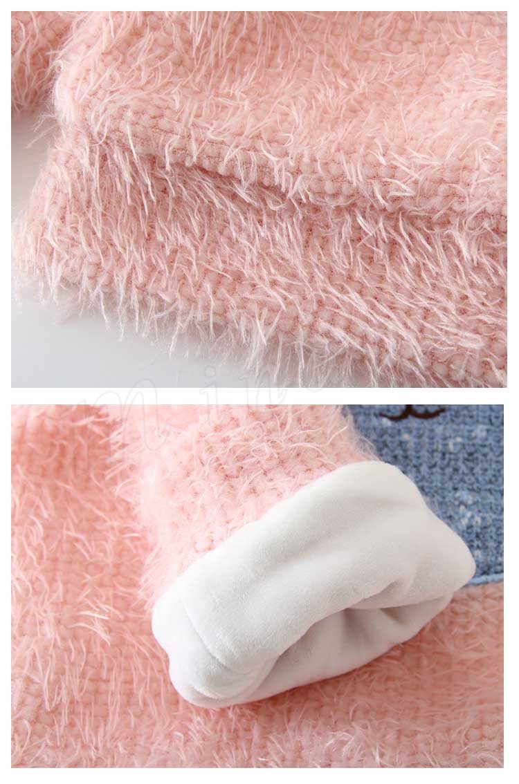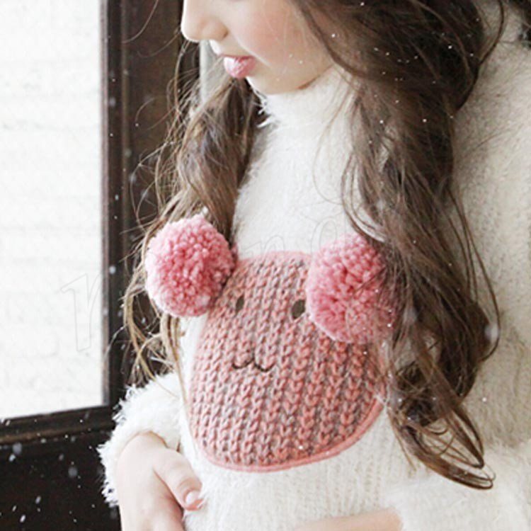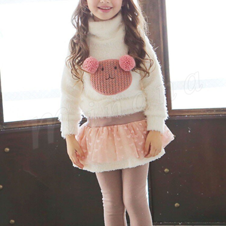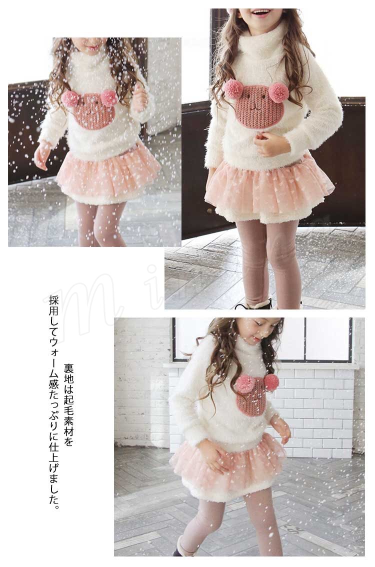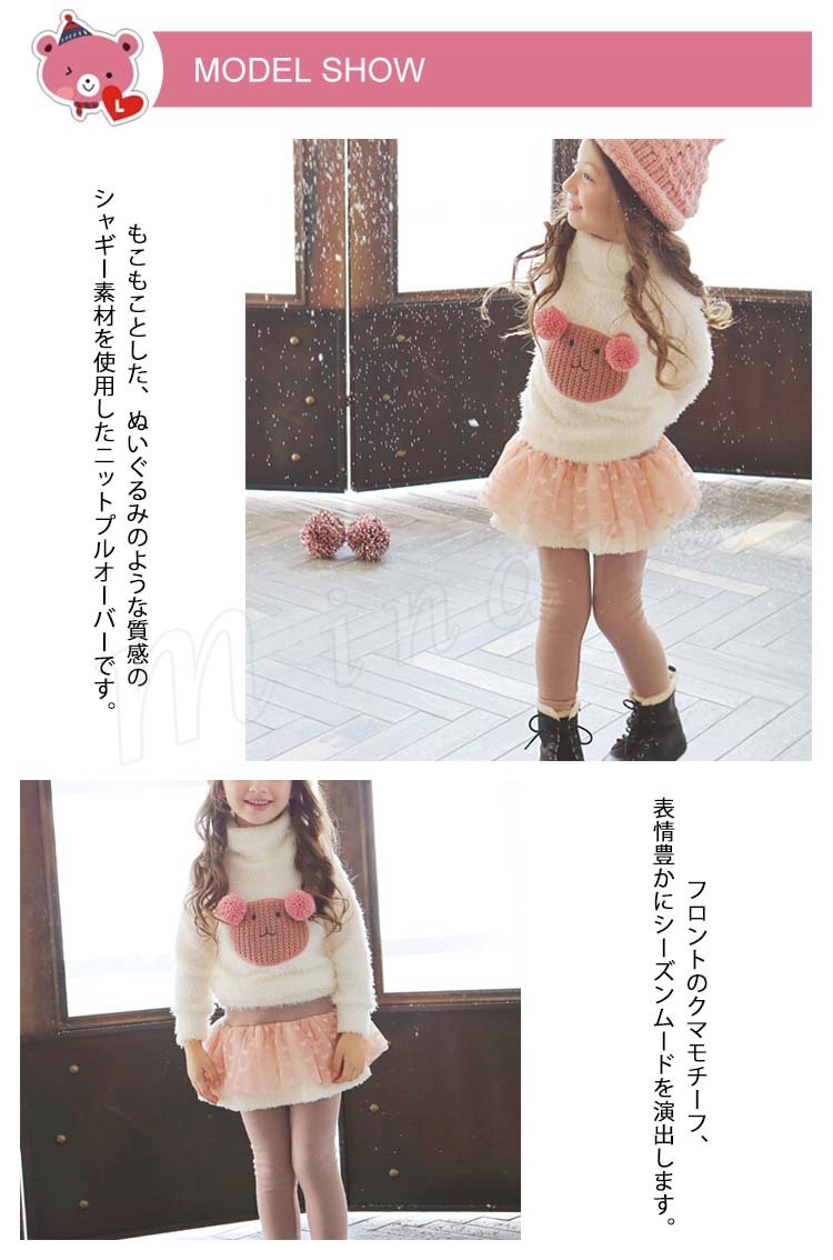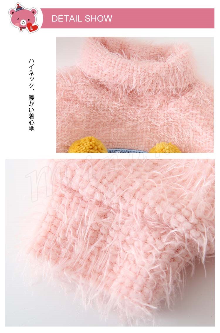 もこもことした、ぬいぐるみのような質感のシャギー素材を使用したニットプルオーバー 女の子ニットセーター 子供服 ハイネック ポンポン モコモコ