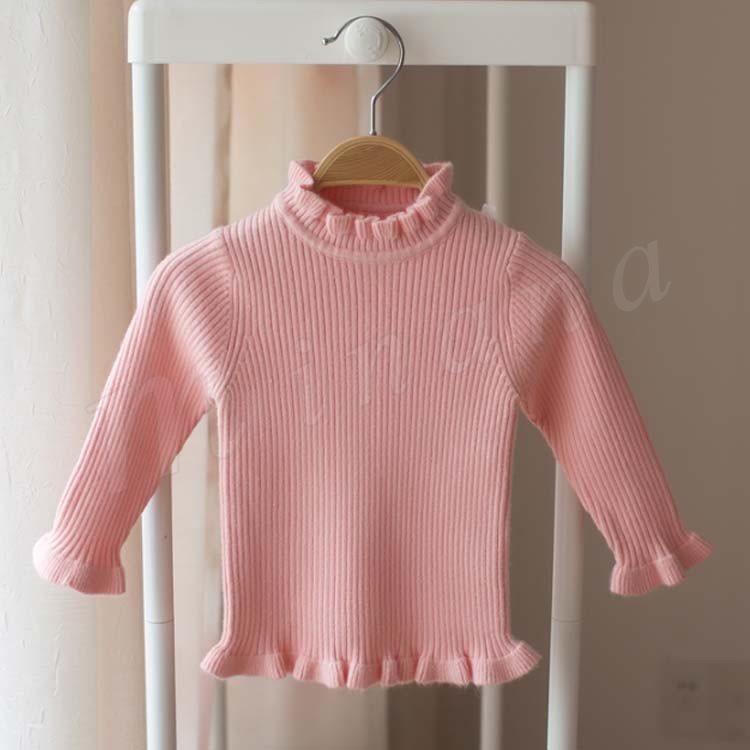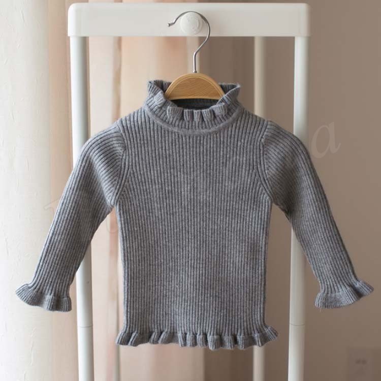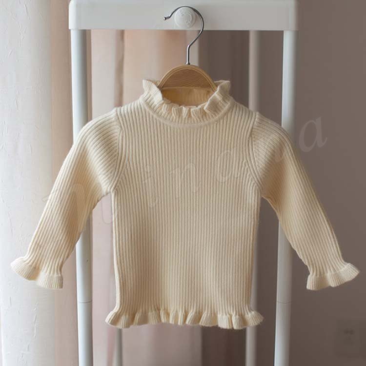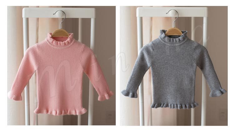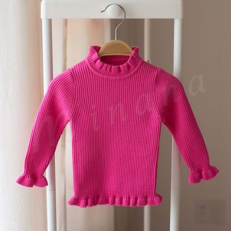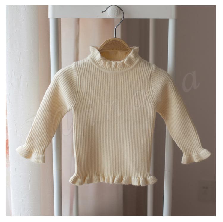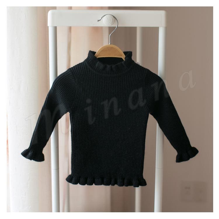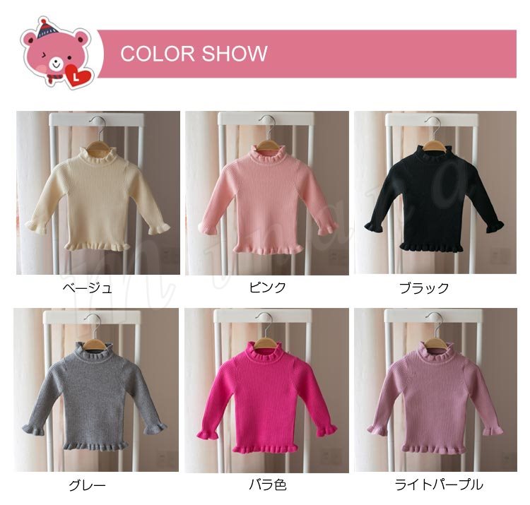 セーター/子供服/女の子/ニットトップス/長袖/スタンドカラー/フリル/伸縮性/純色/リブ編み/ちくちく感ない/柔らかい/カジュアル/可愛い/