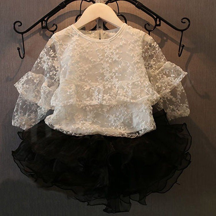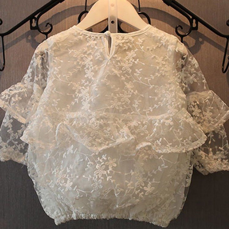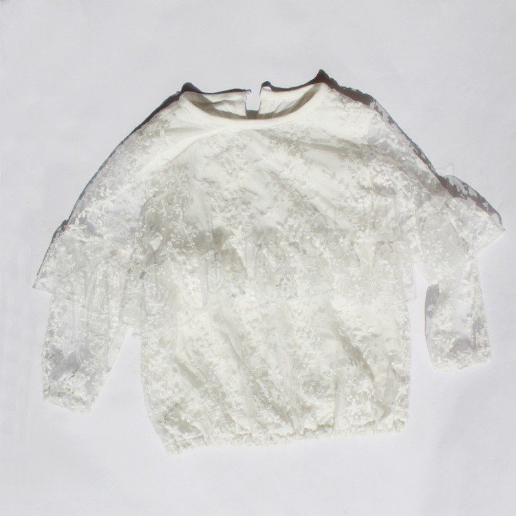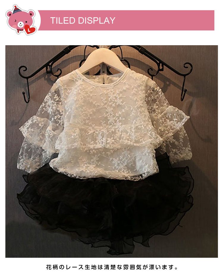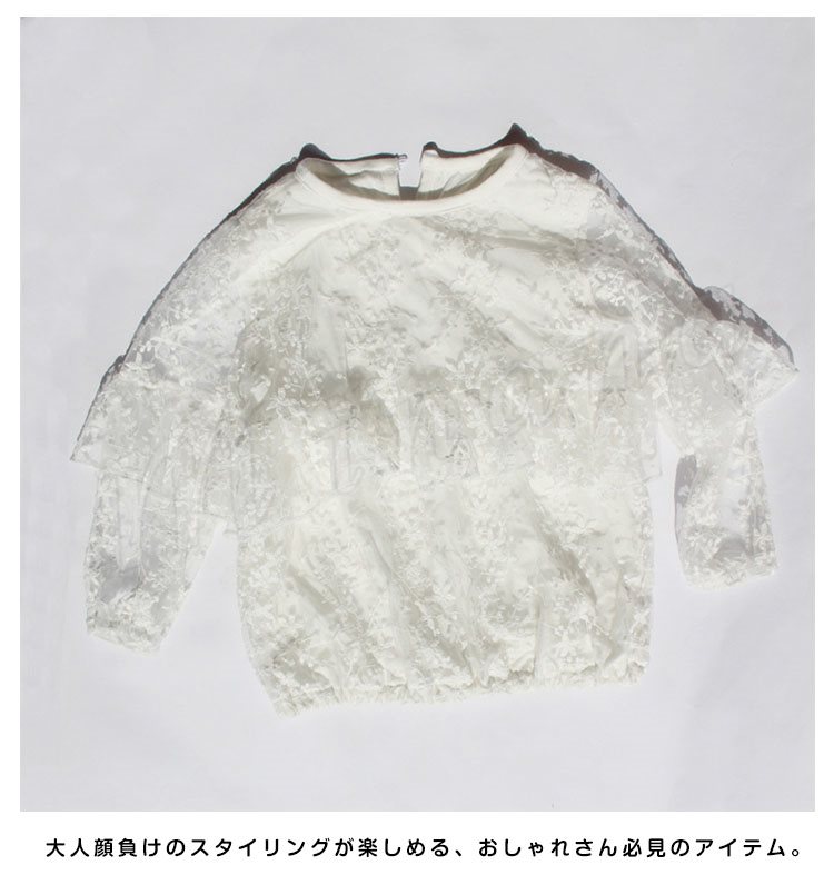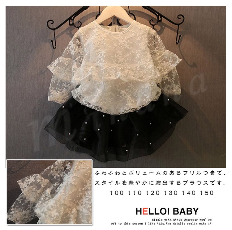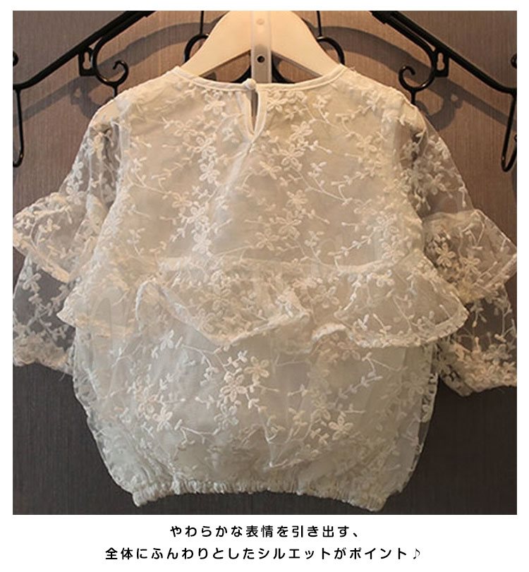 ふわふわとボリュームのあるフリルつきで、スタイルを華やかに演出するブラウス 女の子ブラウス キッズシャツ 子供服 長袖 花柄 レース スウィー