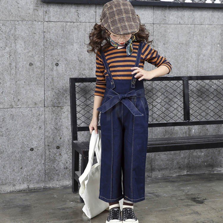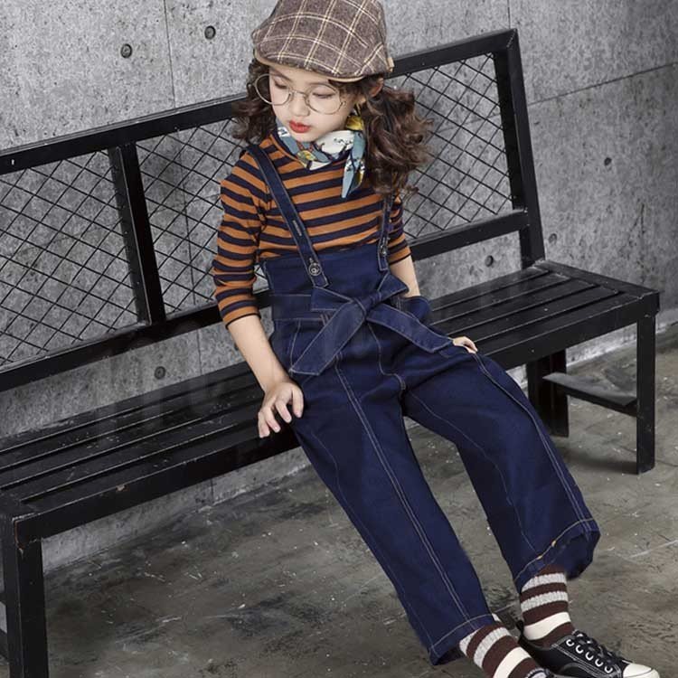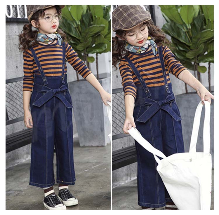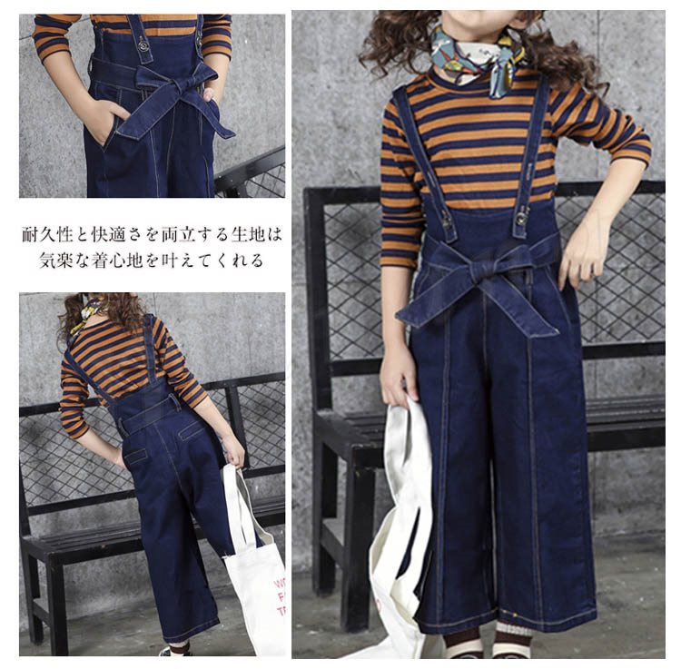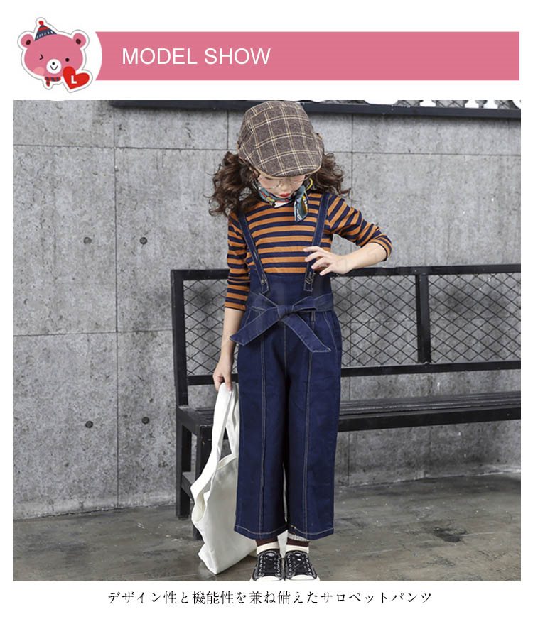 サロペットパンツ/子供/女の子/デニムパンツ/ズボン/ワイドパンツ/ガウチョパンツ/カジュアルパンツ/子供服/二つタイプ/リボン付き/ポケット