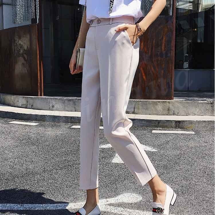 | 絶妙なアンクル丈で、洗練された美しいシルエット! 美脚効果抜群で着用感が良い九分丈パンツ。 裾に向けてすっきりとしたデザイン♪ 定番のカットソーやニットソーコーデはもちろん、 ハイウエストなのでショート丈トップスとの相性も良く、 なんと!ウエスト後ろ部分はゴム仕様に! ヒールでキレイめに、スニーカーでカジュアルに…♪幅広いコーデが楽しめる。 幅広いシーンでお使いいただけるので1枚持っていると、かなり大活躍してくれます! | |