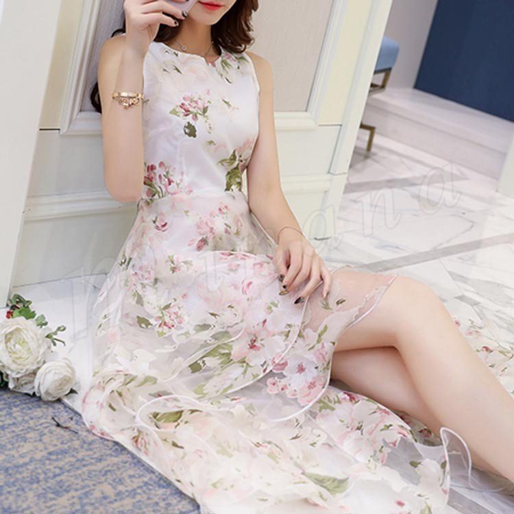 フリル裾と気前がよい花柄プリントで、仕草のたびにふんわり揺れて、エレガントな姿が瞬?人々の目を捉えた。