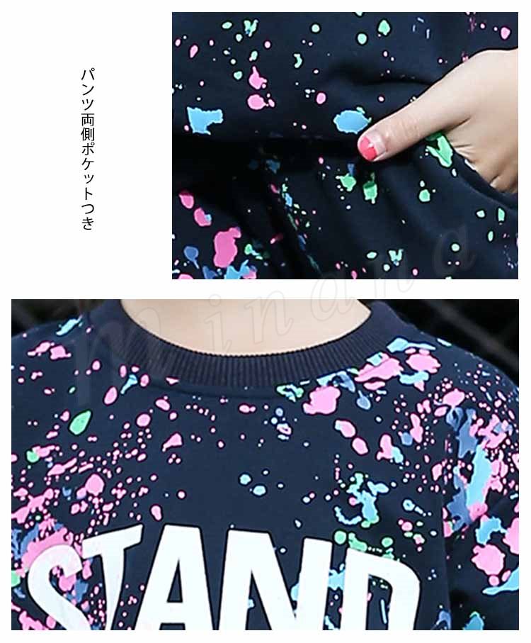| カラフルな溌墨柄のプリントデザイン、インパクト満点なセットアップです。 ネック、袖口や裾にリブデザインのリラックスな着心地がポイントです。 フロントに配色の英文字ロゴ、さり気ないアクセントになります。 存在感溢れるガーリーカジュアルが簡単に叶うセットアイテムです。 | |