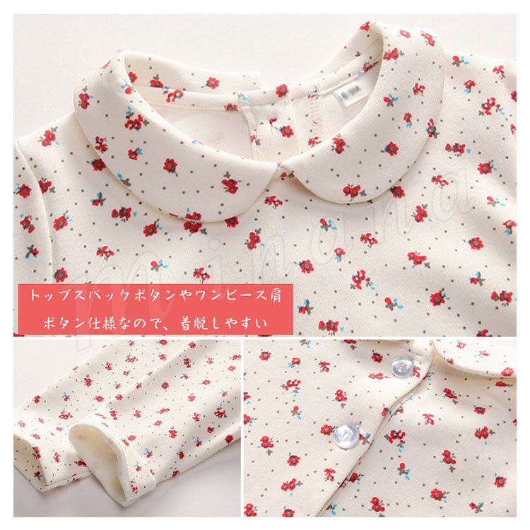 | キッズの可愛さを存分に引き出してくれる、スイートで華やかなセットアップです。 Tシャツの花柄や丸襟で可憐なデザインが、女の子らしさを引き立てます。 フロントに大きいリボンを二重にして甘いムードを盛り上げます。 おしゃれなスタイリングが即完成するので、忙しい朝にも重宝します。 | |