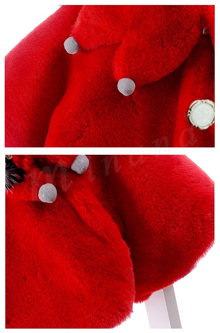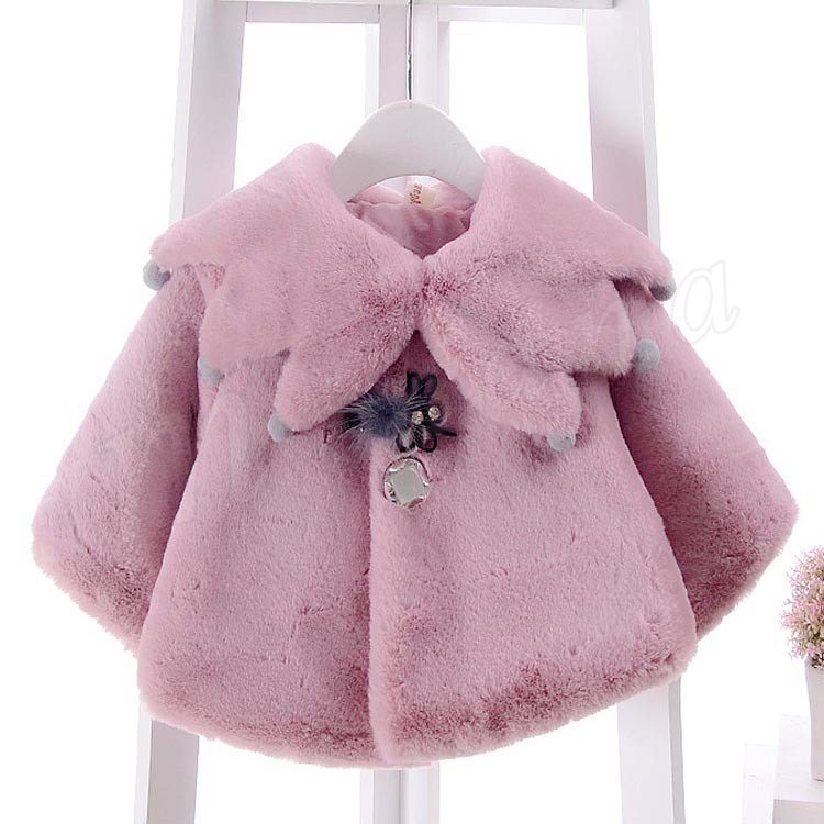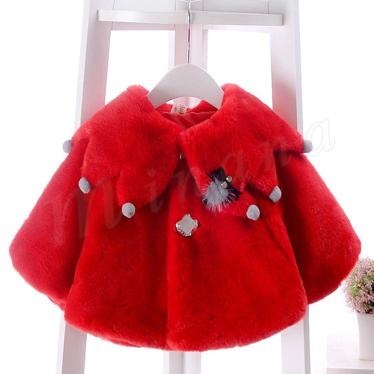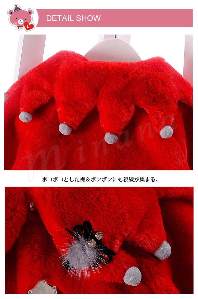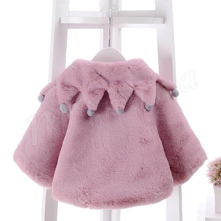 ふっくらとしたボア素材のあたたかみのあるベビーポンチョ 女の子 子供アウター ベビーアウター ケープ マント ヴィンテージ Aライン ポンポン