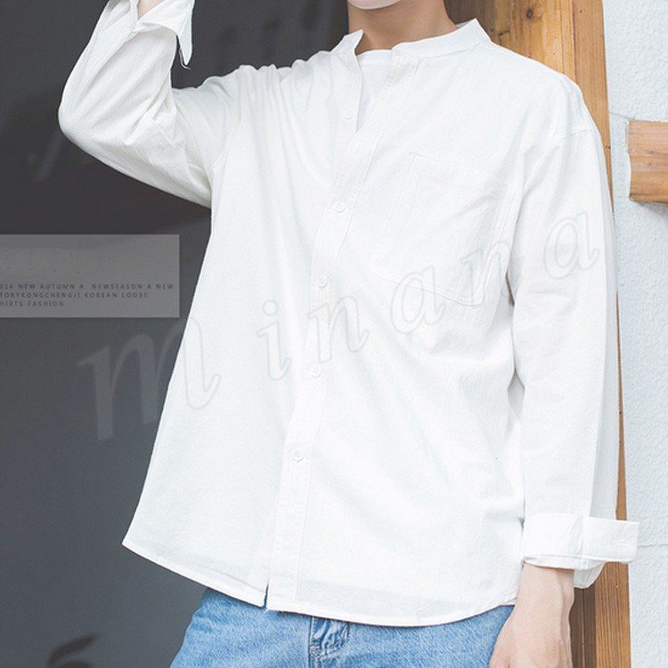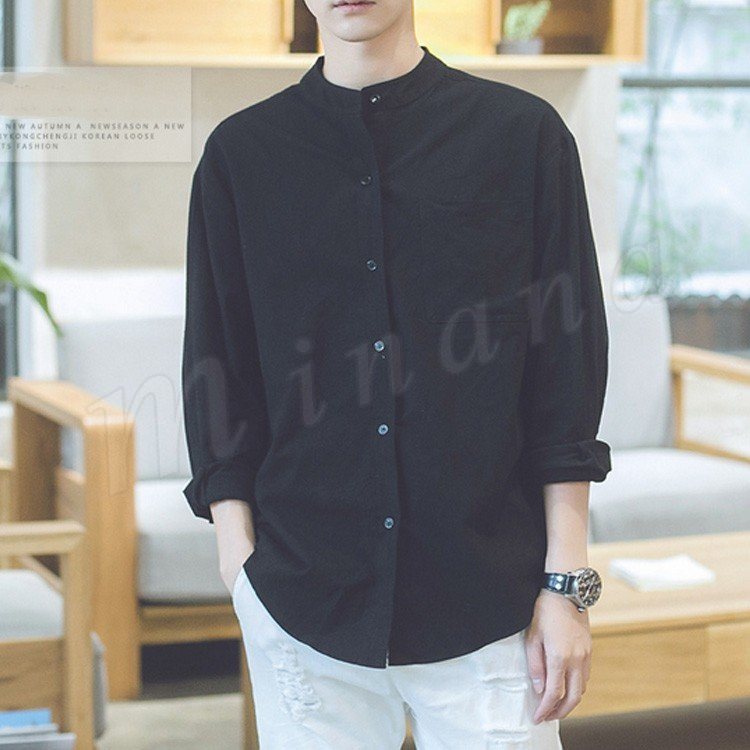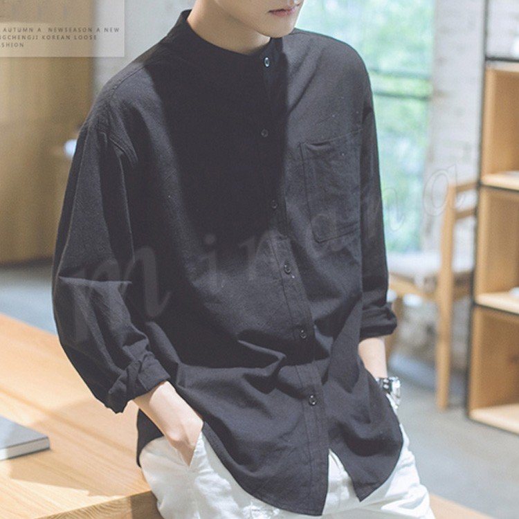 スタンドカラー シャツ 7分袖 和風 長袖 シャツ 立ち襟 バンドカラー シャツ メンズ 薄手 シャツ 無地 カジュアル 春夏 春物
