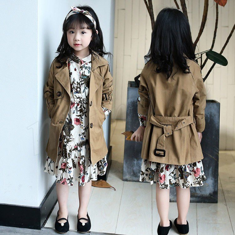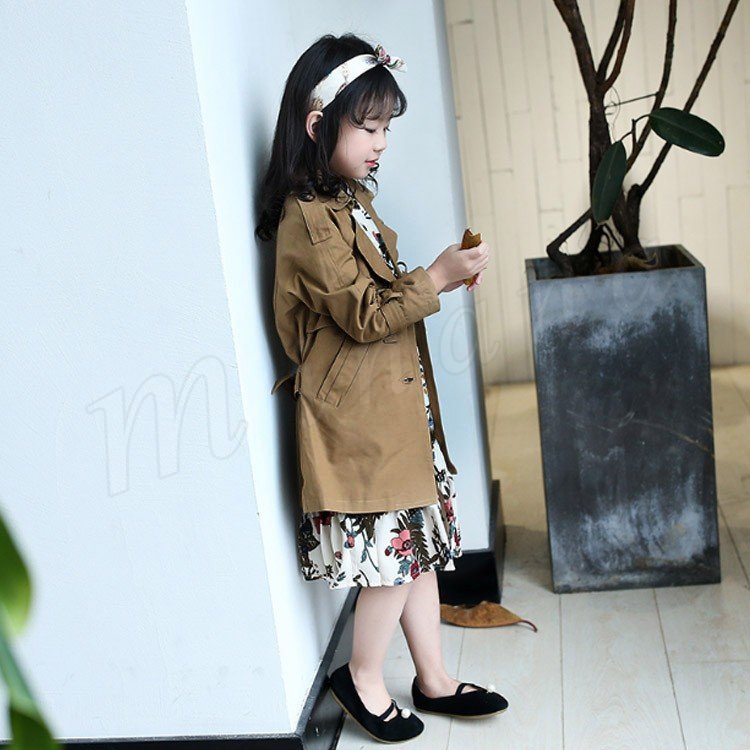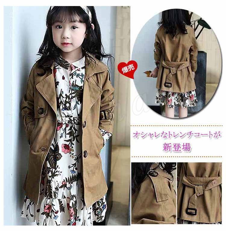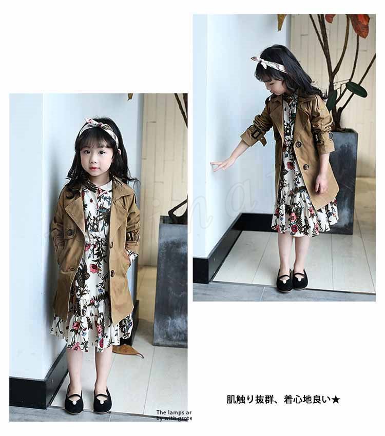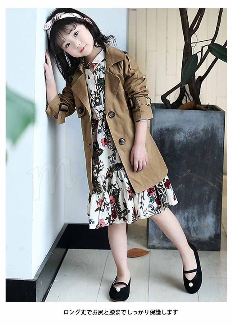 トレンチコート/子供/女の子/コートアウター/ロングコート/普段着/キッズコート/子供服/羽織物/ベルト付き/ボタン付き/防寒対策/秋物/人気