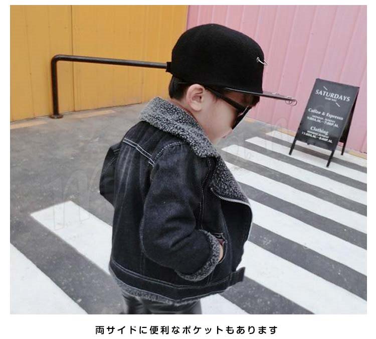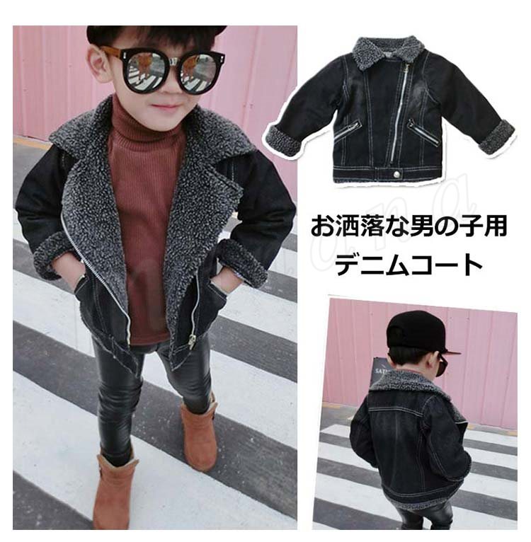 防寒コート/子供/男の子/コートアウター/裏起毛アウター/デニムジャケット/デニムコート/キッズアウター/上着/普段着/子供服/もこもこ/ふわ