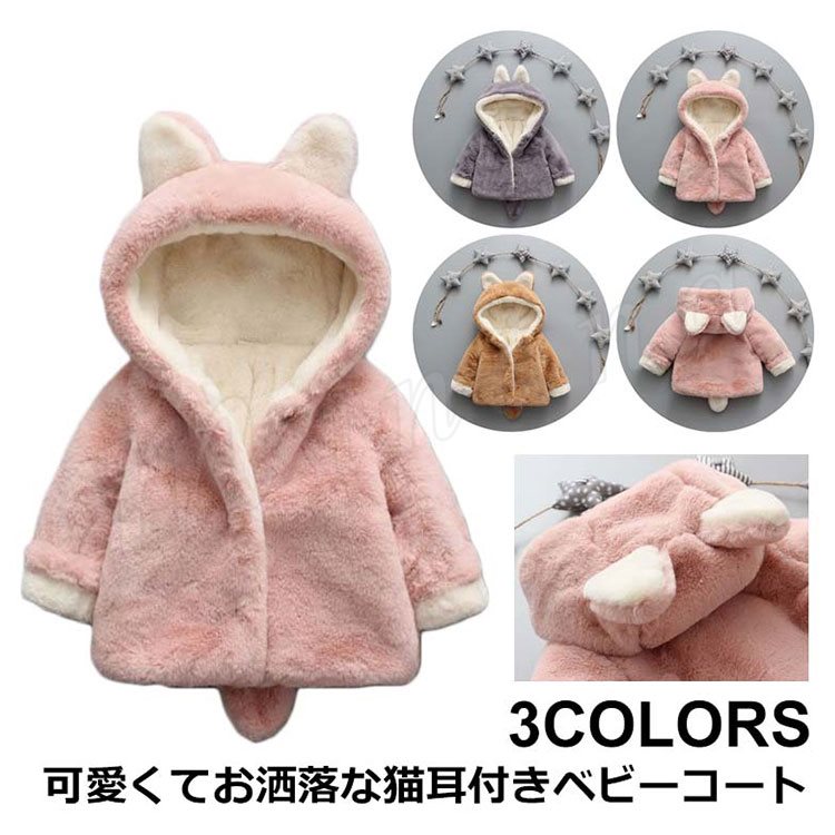 コート/ベビー/キッズ/コートアウター/男の子/女の子/フード付コート/ボア付きアウター/ジャケット/キッズ服/普段着/防寒服/ウサギフード/