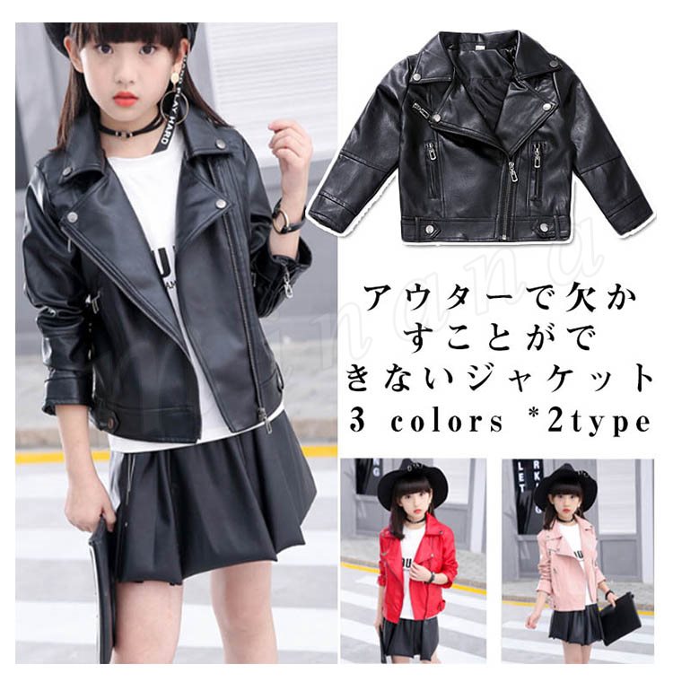 ジャケット/女の子/女児/子供服/キッズ/フェイクレザージャケット/アウター/ライダース/PUジャケット/キッズアウター/ジャンパー/トップス
