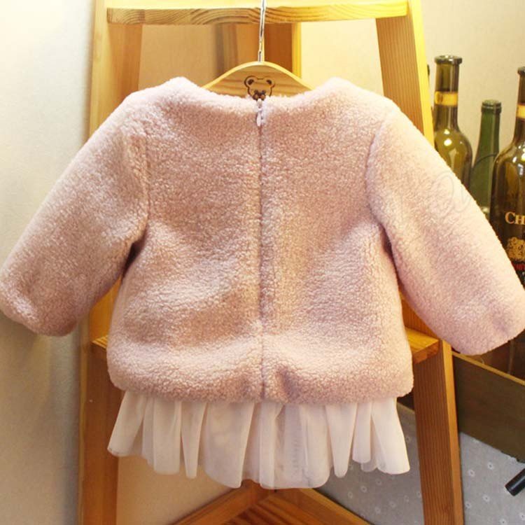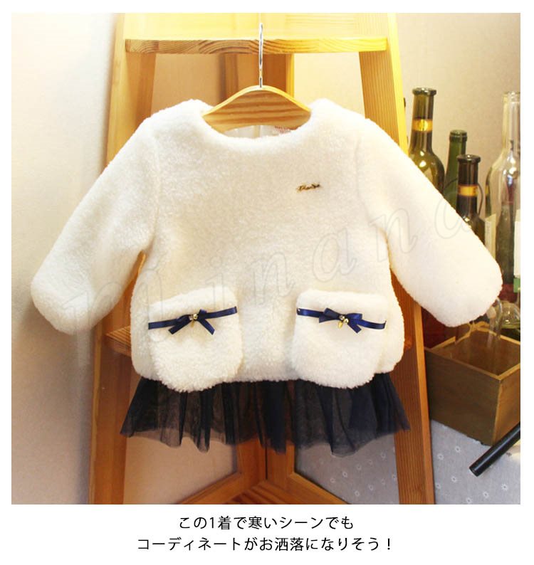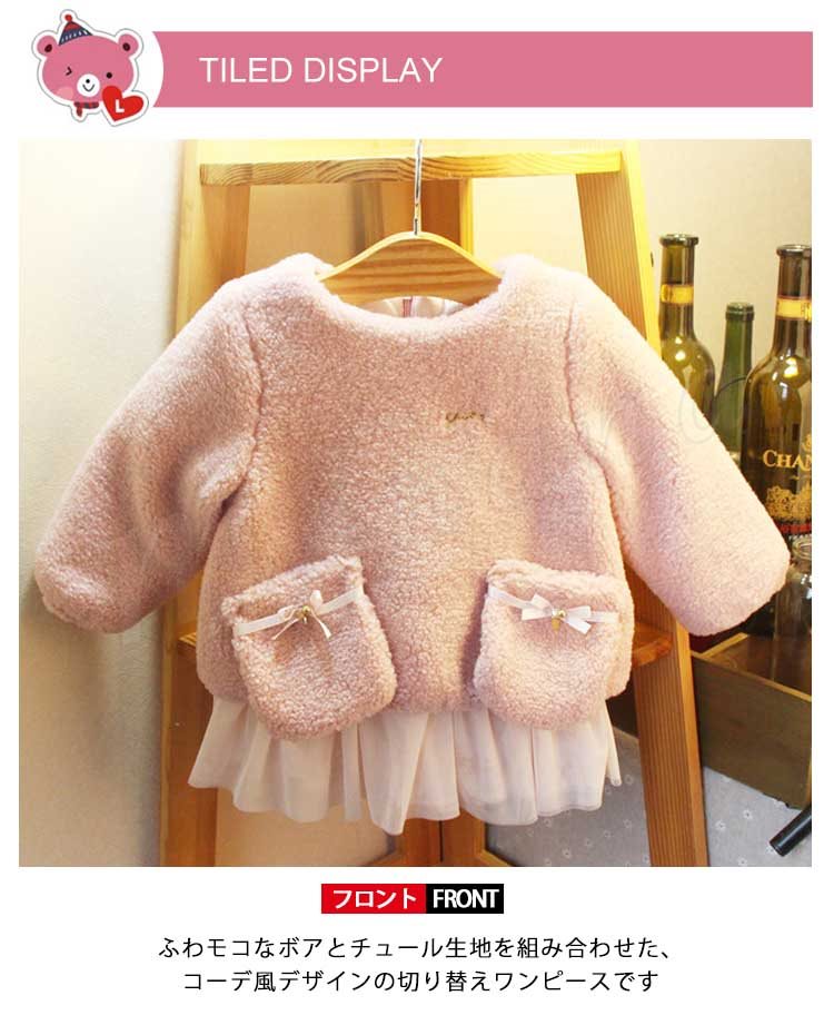 ふわモコなボアとチュール生地を組み合わせた、コーデ風デザインの切り替えワンピース ベビーワンピース 女の子ワンピース ベビー服 可愛い リボン