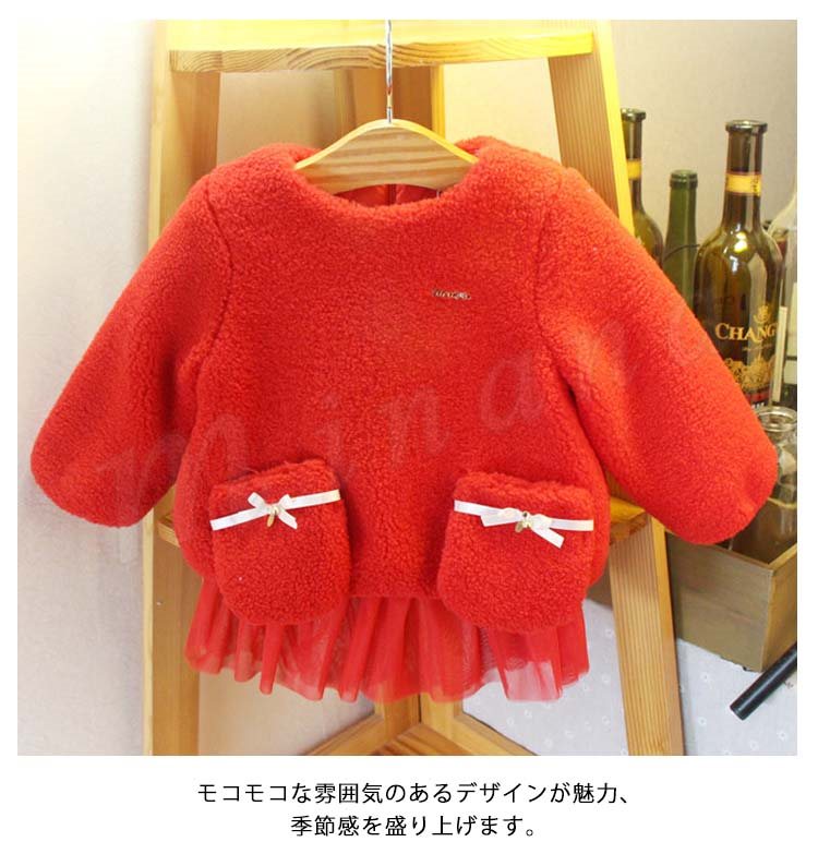 | ふわモコなボアとチュール生地を組み合わせた、コーデ風デザインの切り替えワンピースです 膨らんとしたポケットにちょこんと配したリボン、さりげなく可愛さが香ります。 モコモコな雰囲気のあるデザインが魅力、季節感を盛り上げます。 この1着で寒いシーンでもコーディネートがお洒落になりそう! | |