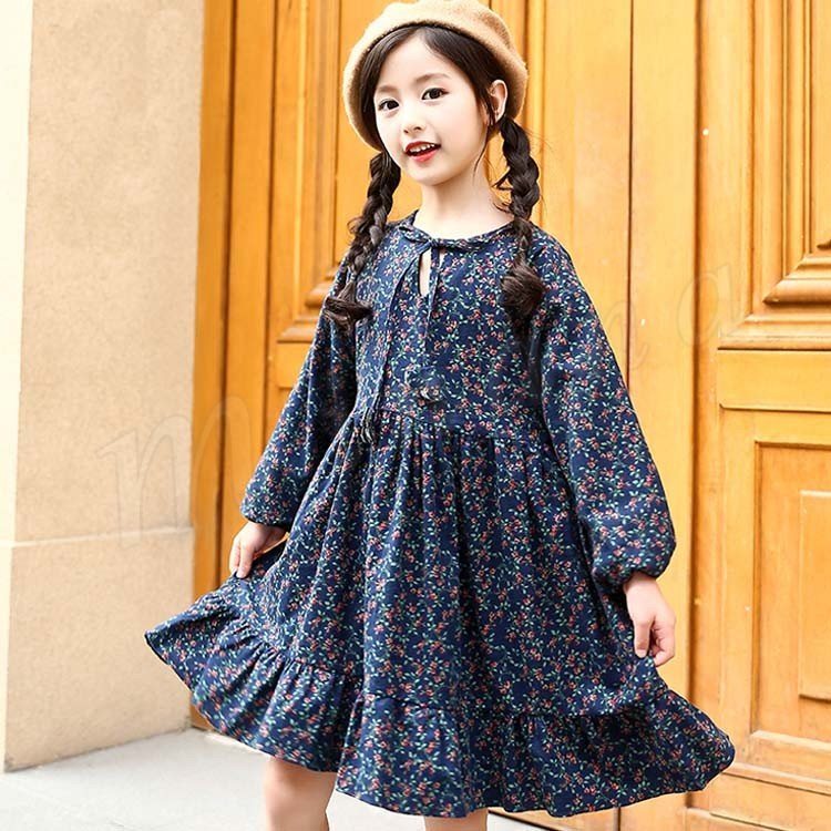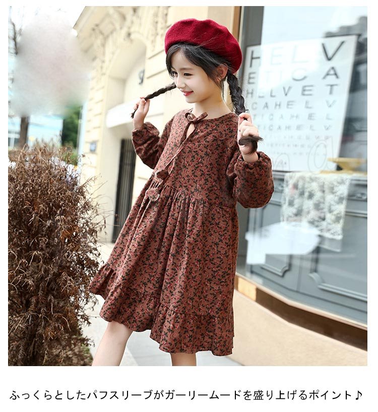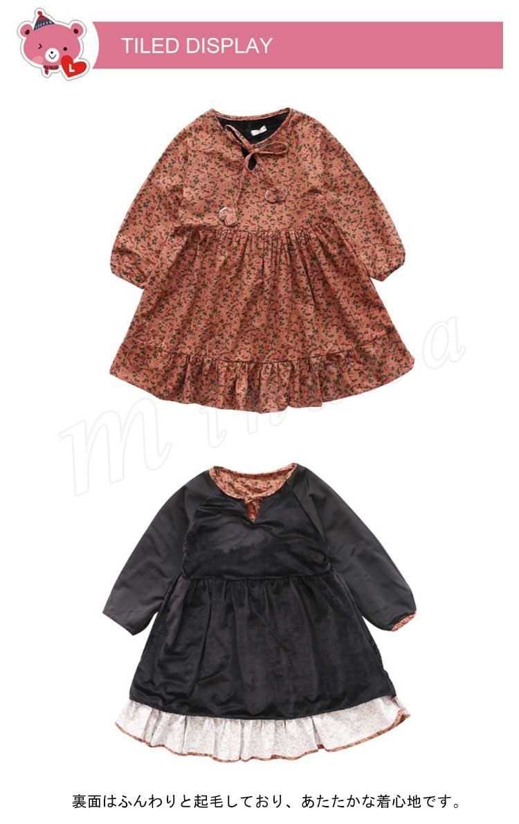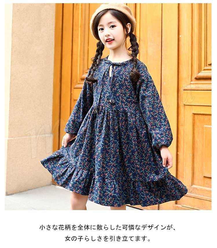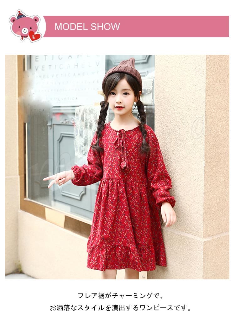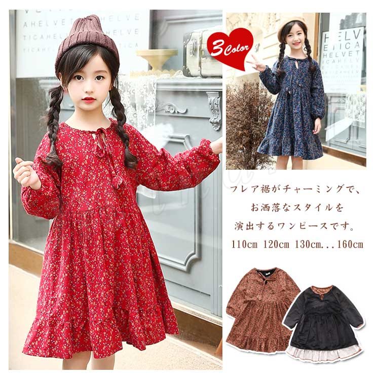 フレア裾がチャーミングで、お洒落なスタイルを演出するワンピース 女の子ワンピース 子供服 長袖 裏起毛 花柄 Aラインワンピース スウィート