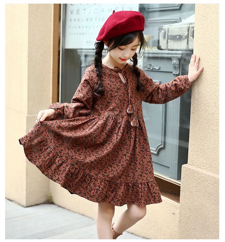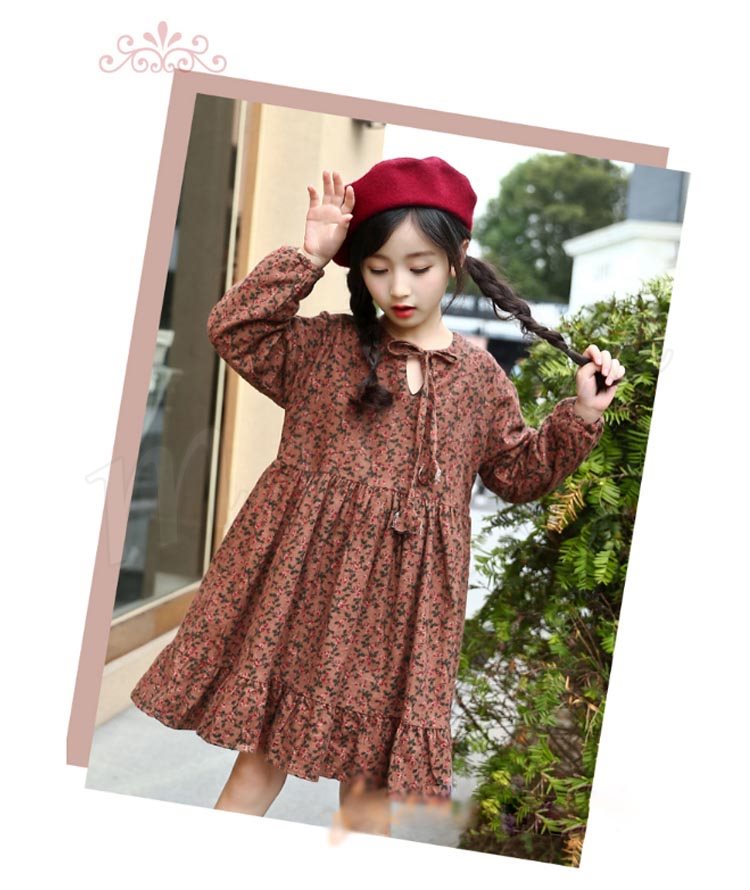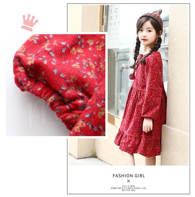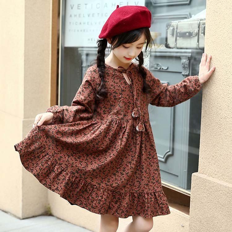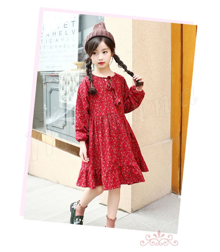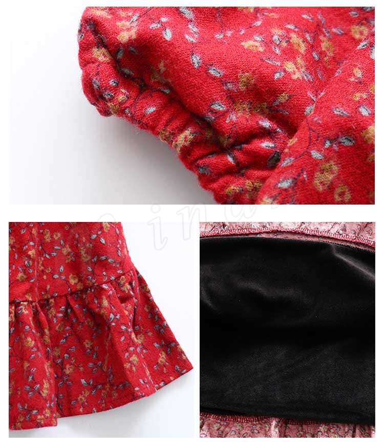 フレア裾がチャーミングで、お洒落なスタイルを演出するワンピース 女の子ワンピース 子供服 長袖 裏起毛 花柄 Aラインワンピース スウィート