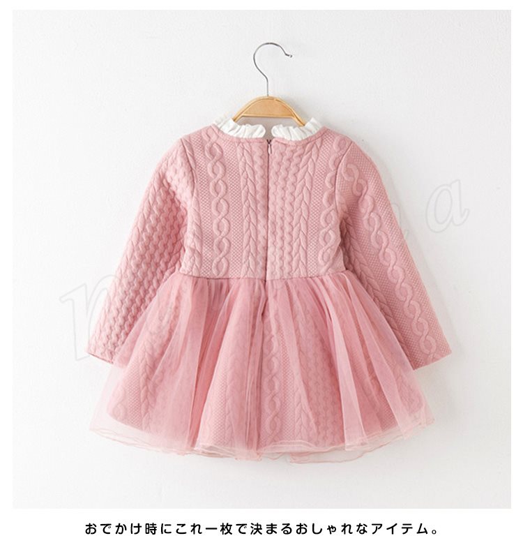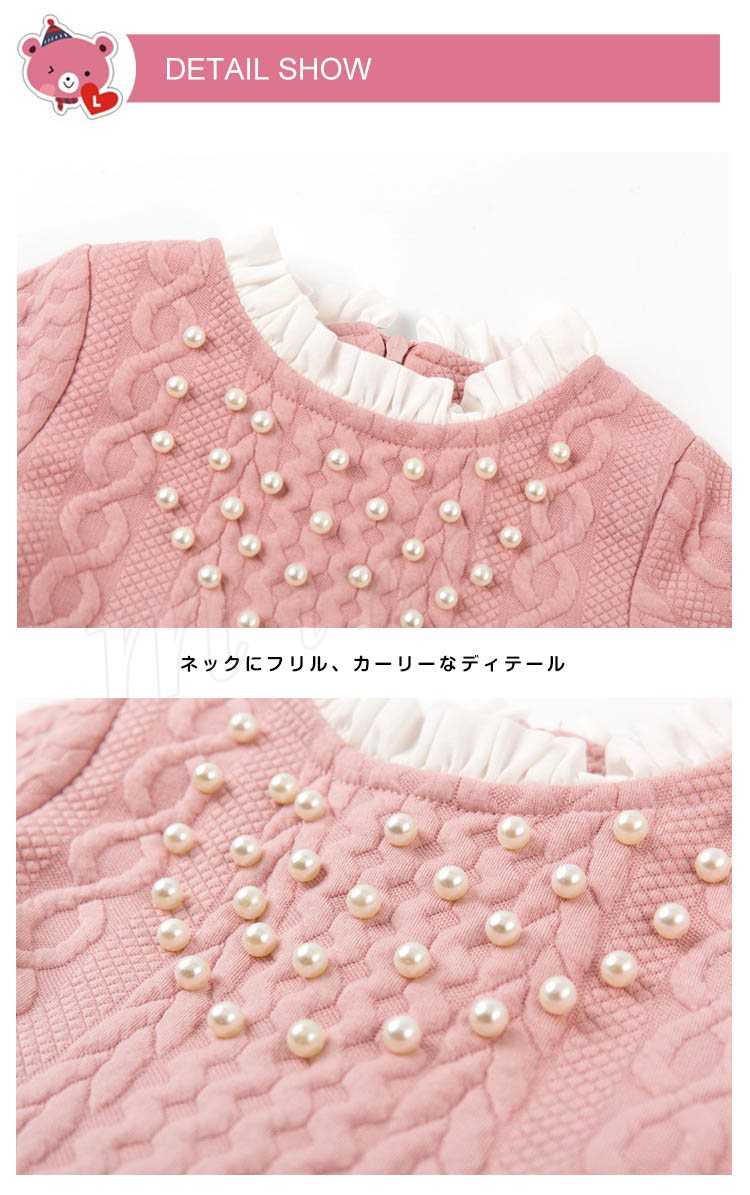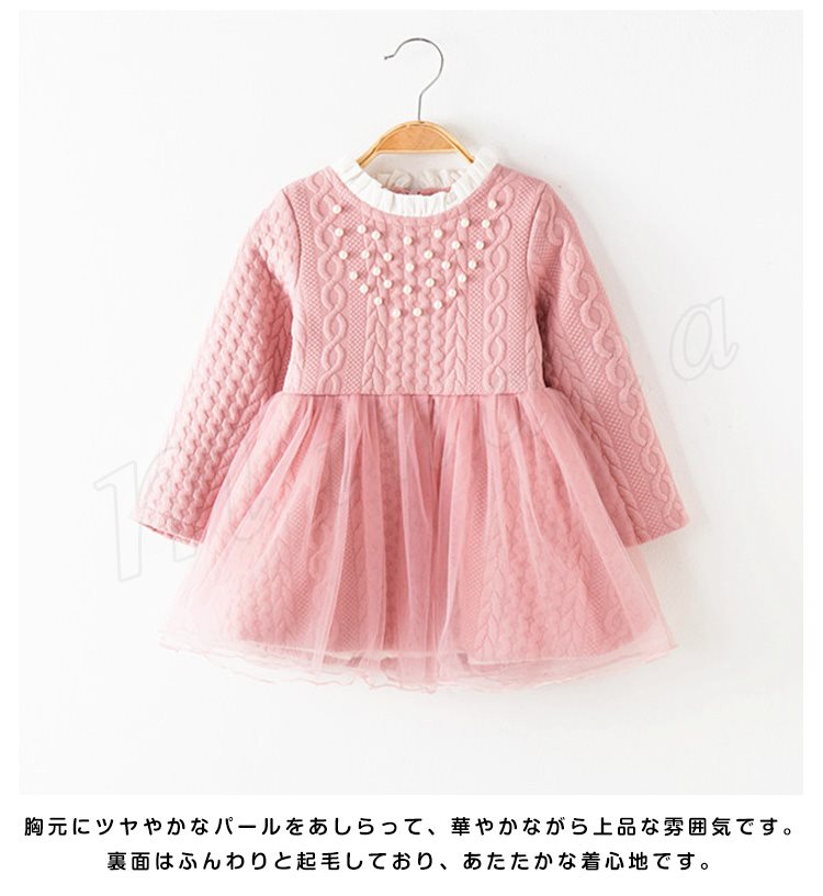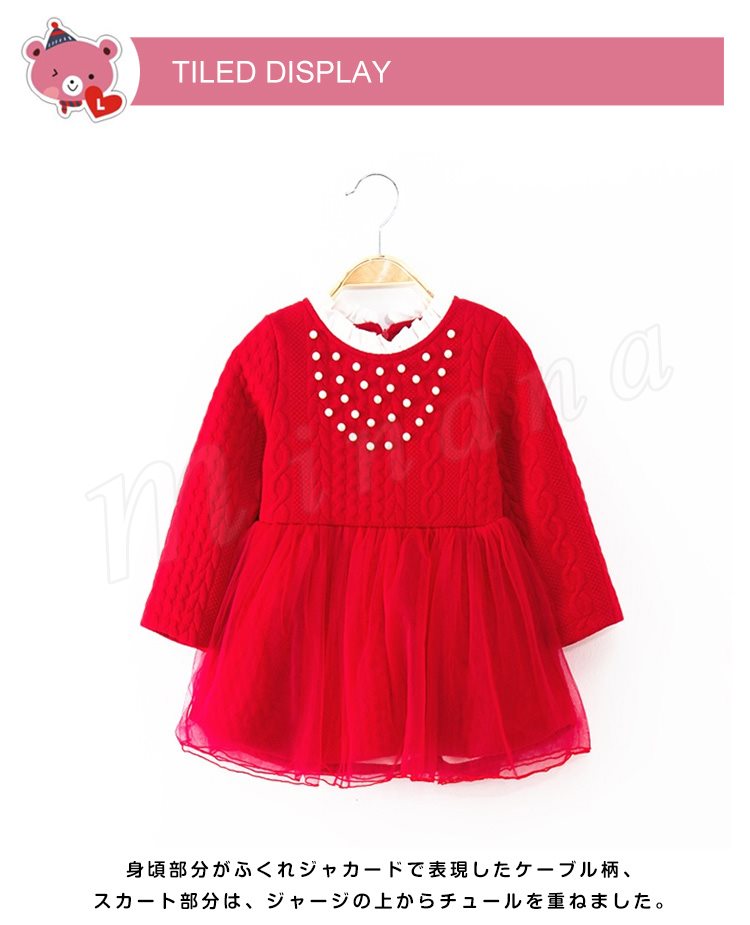 ボリュームのあるチュチュスカートが魅力のワンピース キッズワンピース 女の子 Aラインワンピース ドッキングワンピース パール フリル エレガ