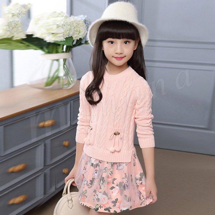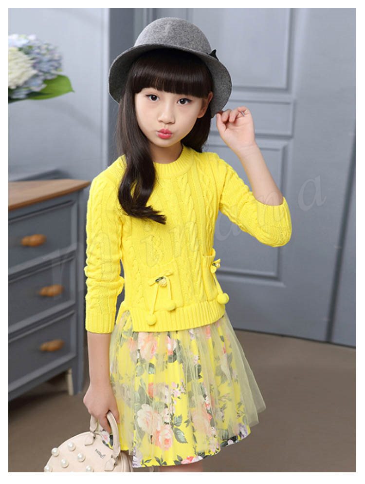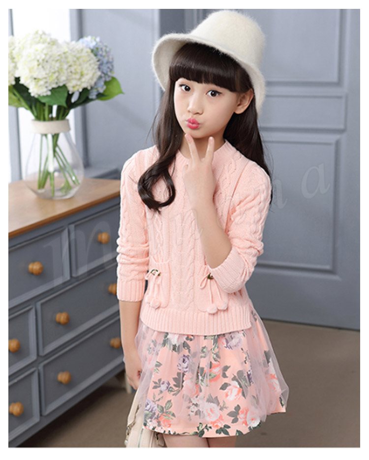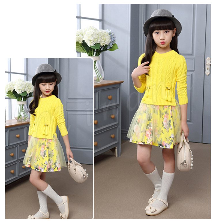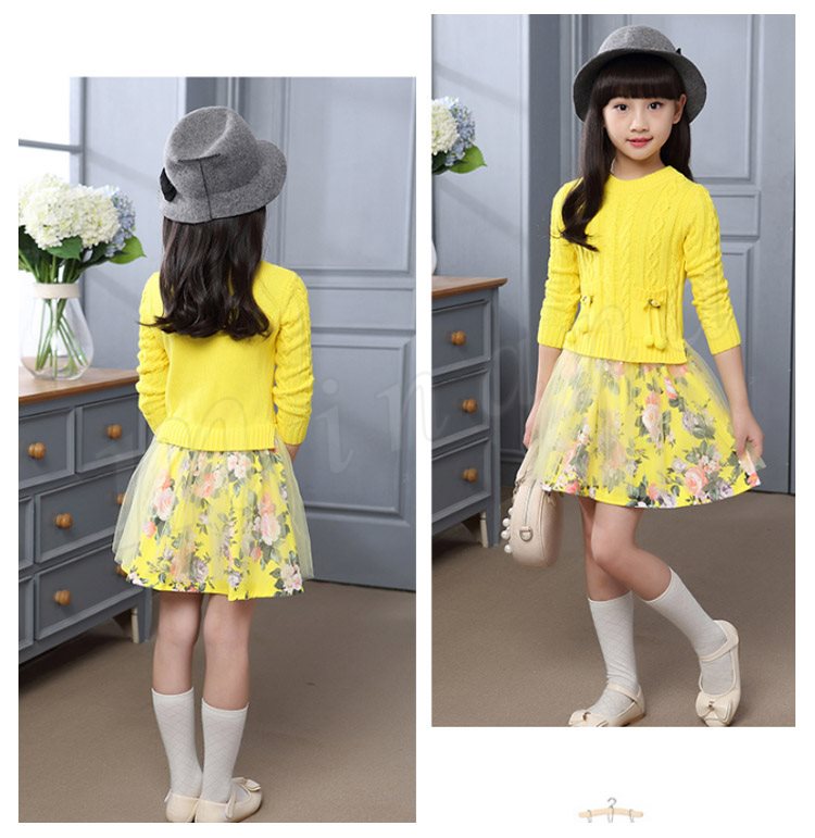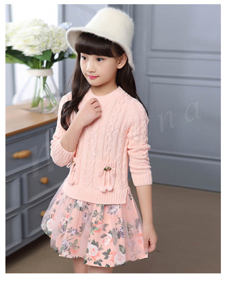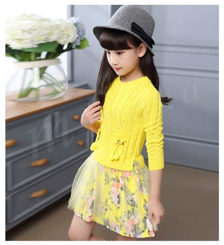 上身頃をニット生地、スカート部分をチュールで切り替えた、異素材コンビの切り替えワンピース 女の子ワンピース 子供服 長袖 Aラインワンピース