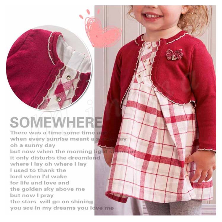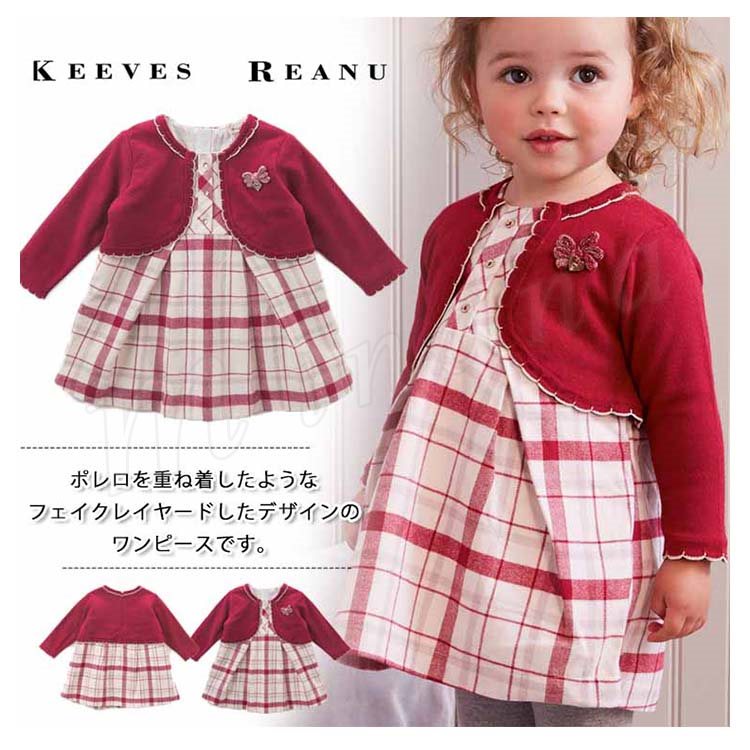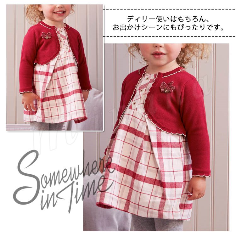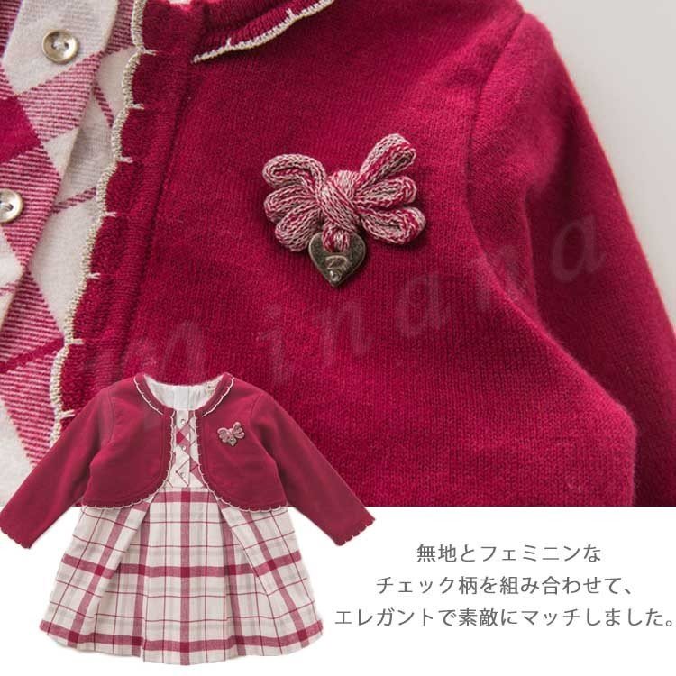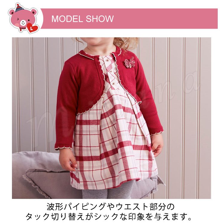 ポレロを重ね着したようなフェイクレイヤードしたデザインのワンピース 女の子ワンピース 子供服 Aラインワンピース コサージュ 配色 スウィート