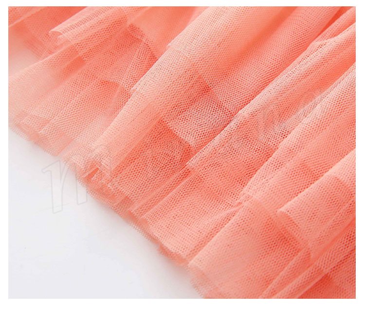 スカート部分へチュール生地をふわりと3枚重ねて、スウィートムードあふれるルックスに♪