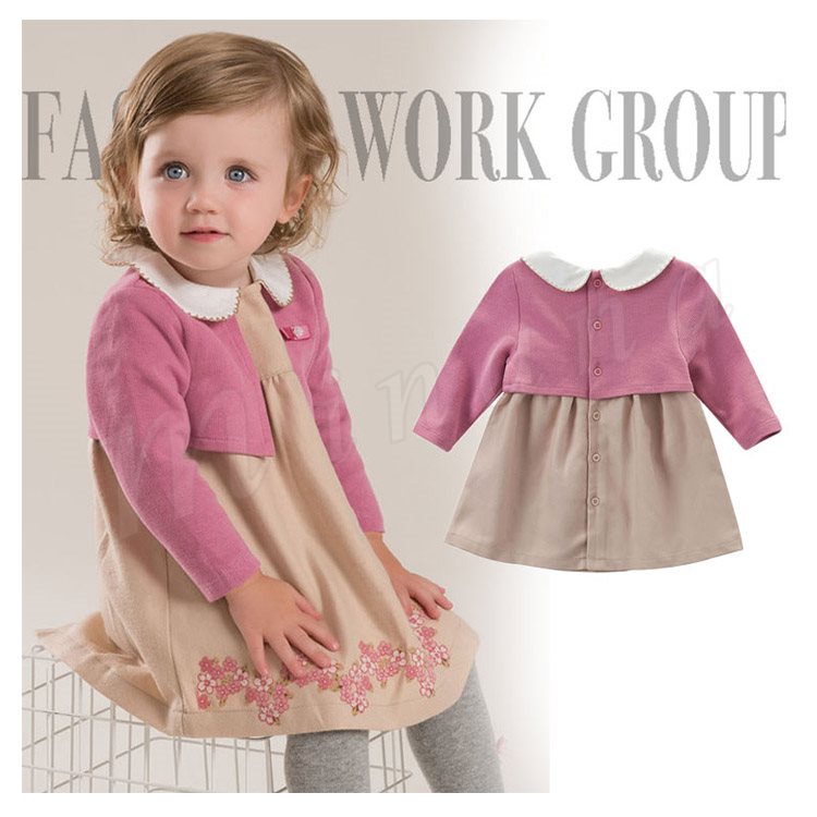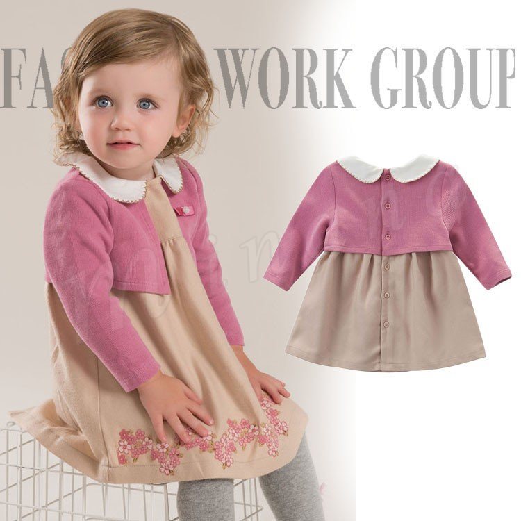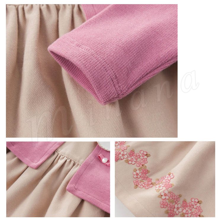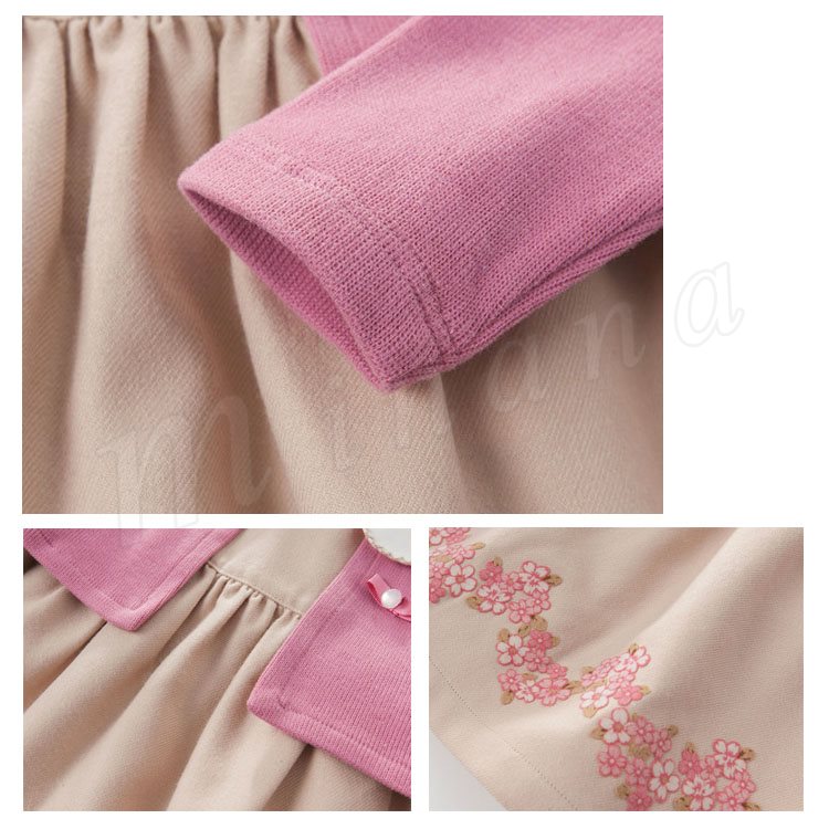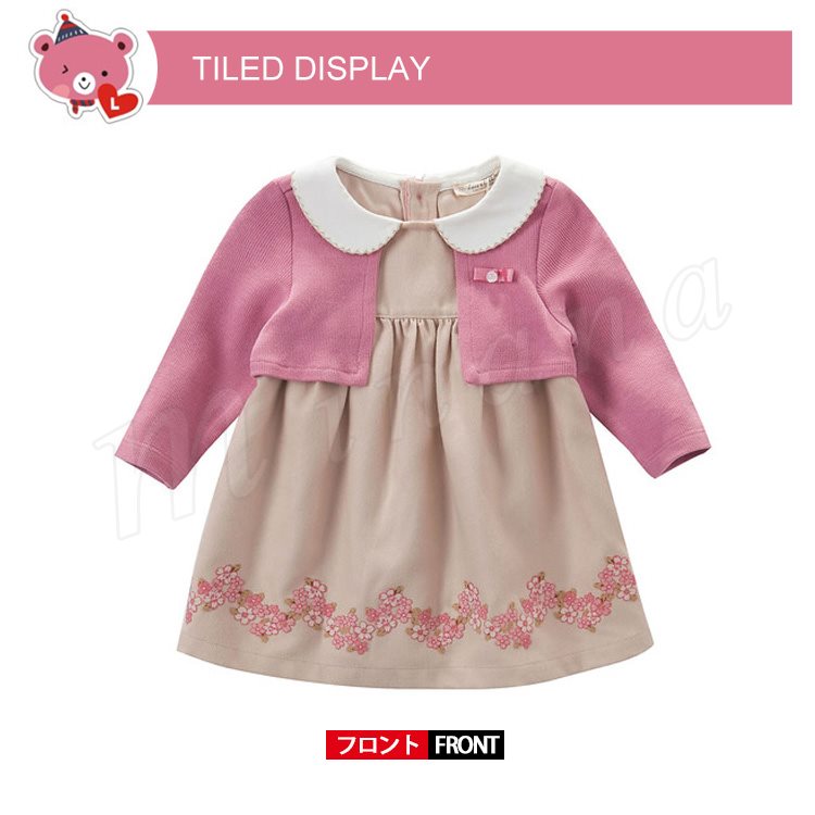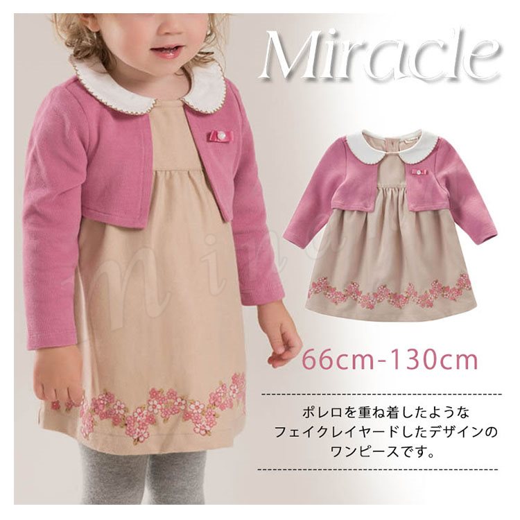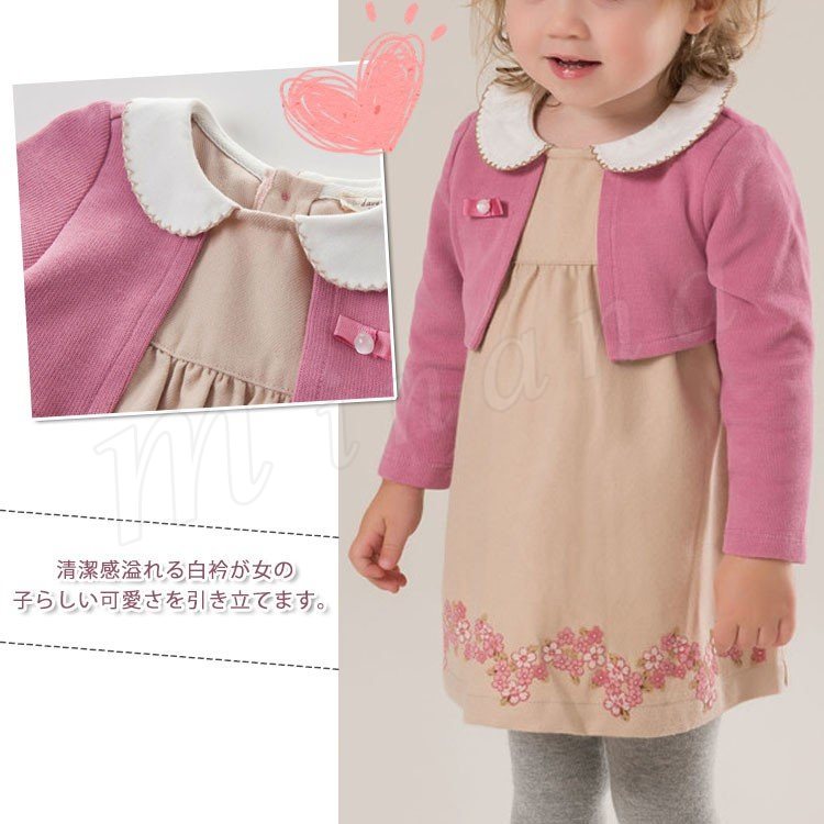 ポレロを重ね着したようなフェイクレイヤードしたデザインのワンピース 女の子ワンピース 子供服 Aラインワンピース フラワー エレガント 可愛い