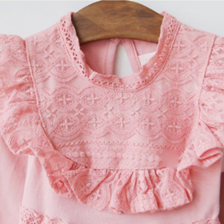 胸元部分にフリルやレースをあしらって、上品な甘さを添えました。