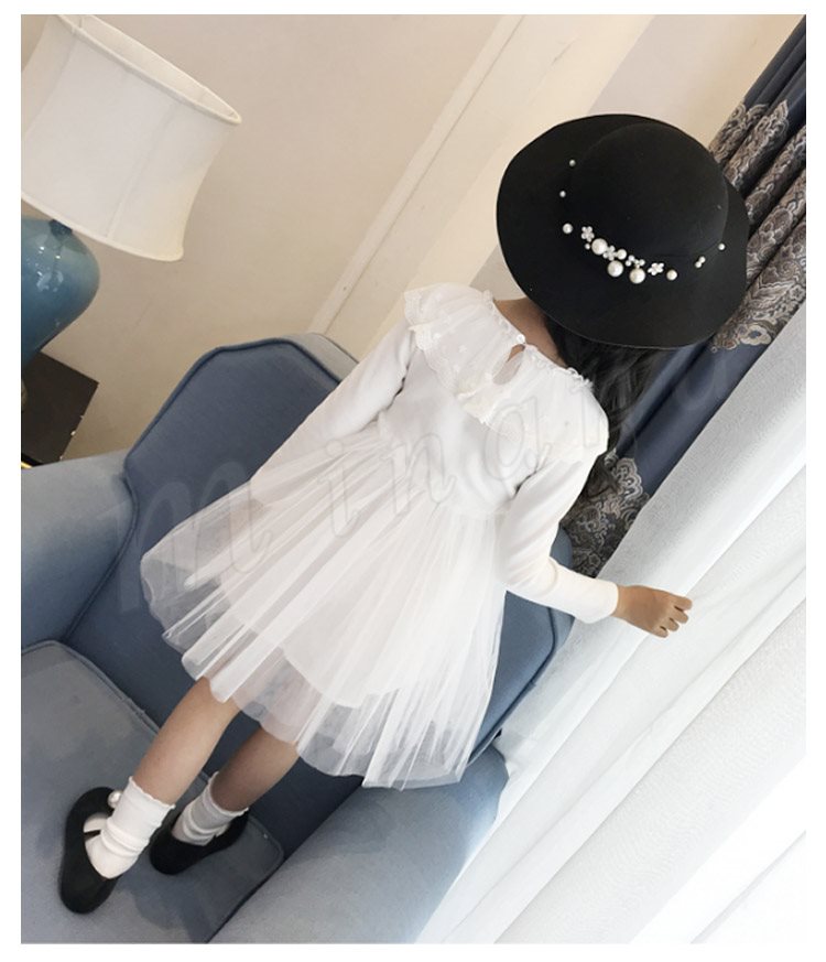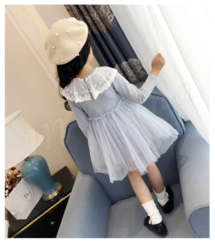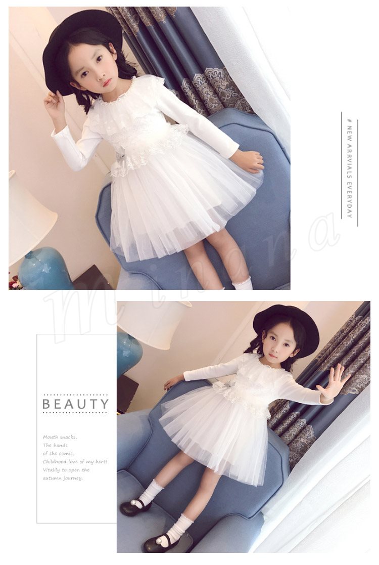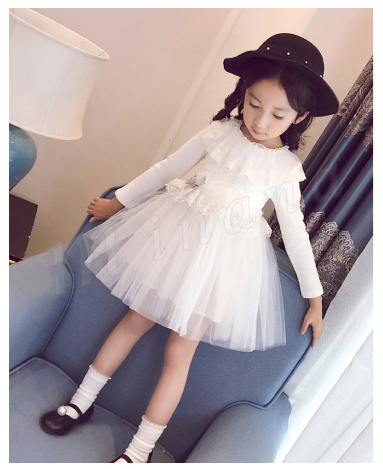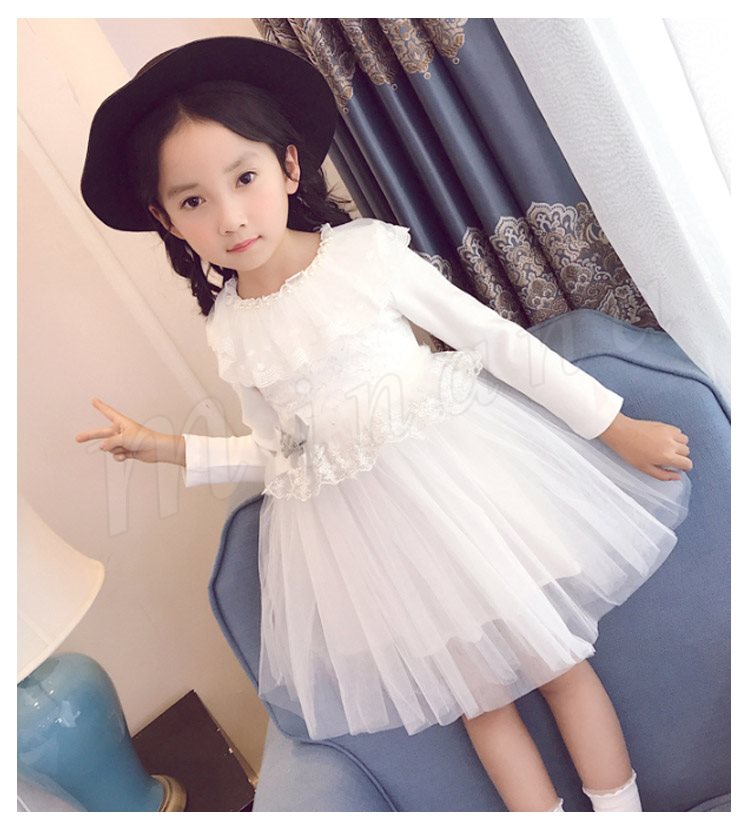 チュールと多様なレース使いがプリンセス風たっぷりのワンピース 女の子ワンピース 子供服 長袖 Aラインワンピース リボン エレガント お洒落