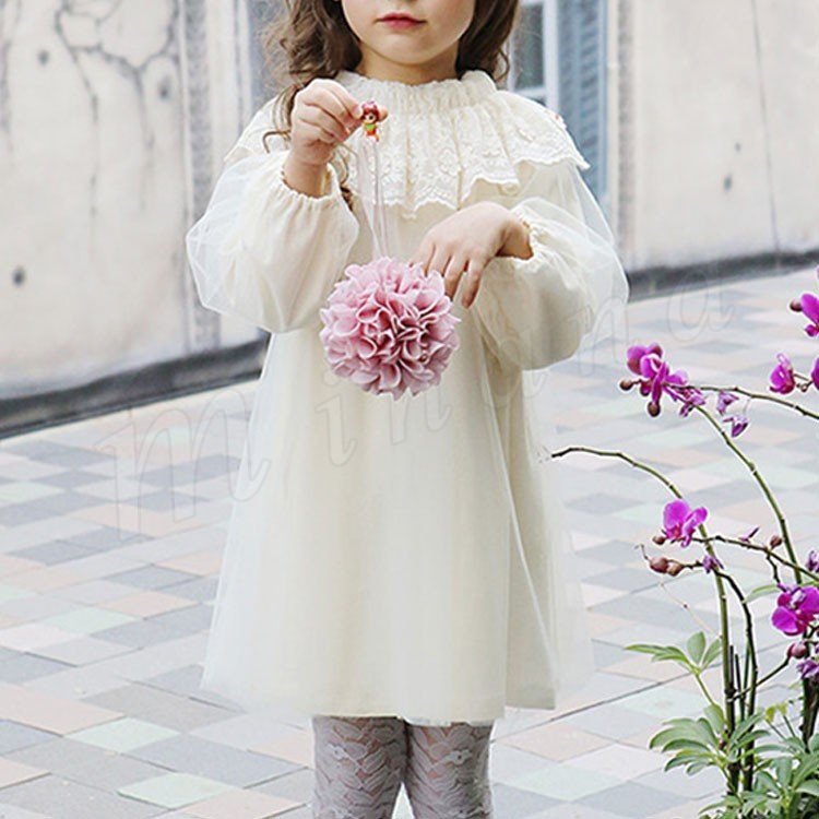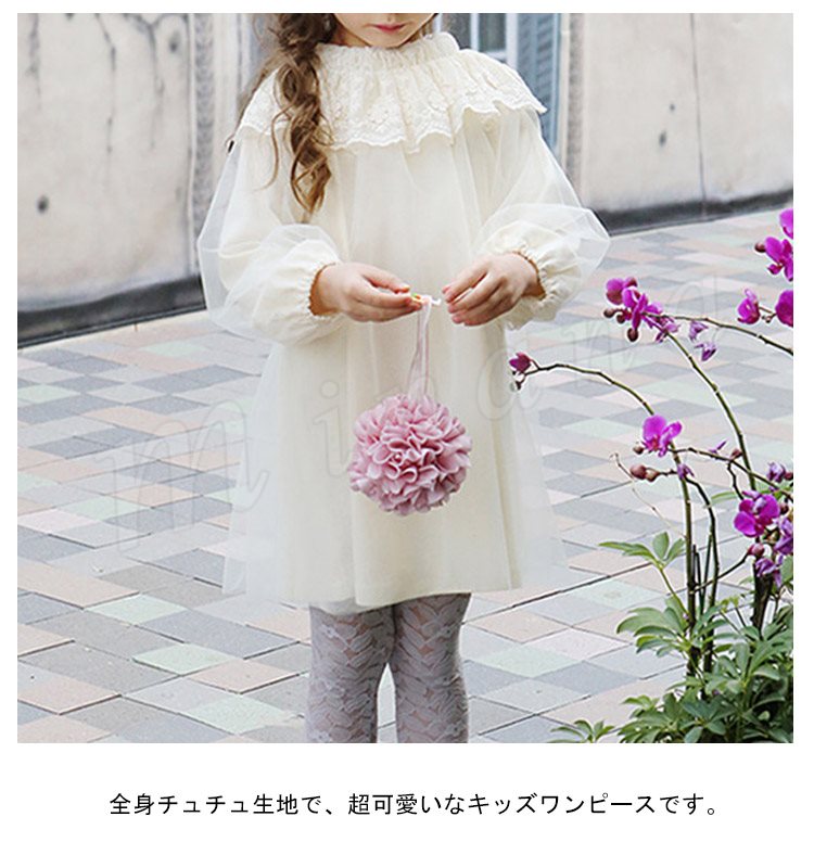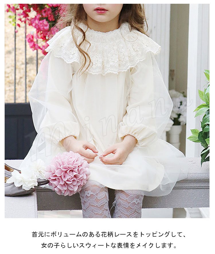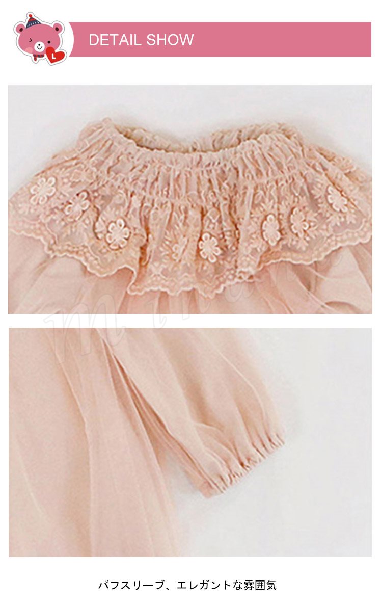 全身チュチュ生地で、超可愛いなキッズワンピース 女の子 Aラインワンピース 子供服 パフスリーブ 長袖 レース 花柄 エレガント 可愛い スウ