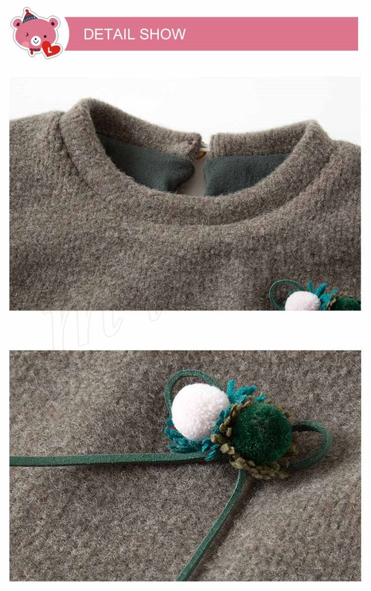 フロントにカラーポンポンをあしらい、可愛いなキッズワンピース 女の子長袖ワンピース 子供服 ベビーワンピース 配色 ポンポン キュート お洒落