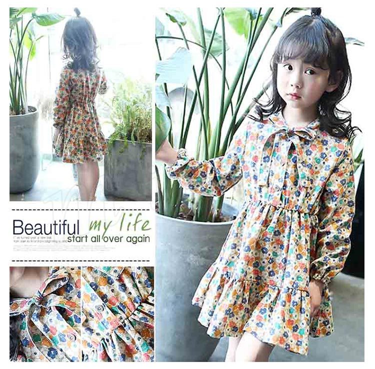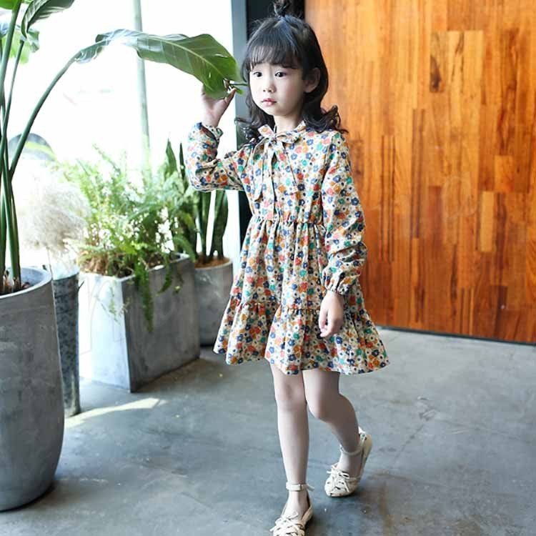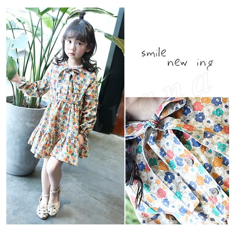 ワンピース/子供/女の子/花柄ワンピース/長袖ワンピース/カジュアルワンピース/パーティードレス/普段着/キッズ服/子供服/リボン付き/フリル