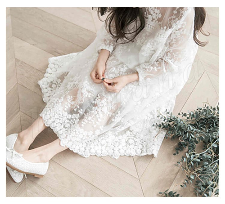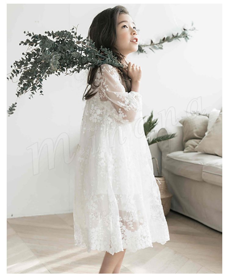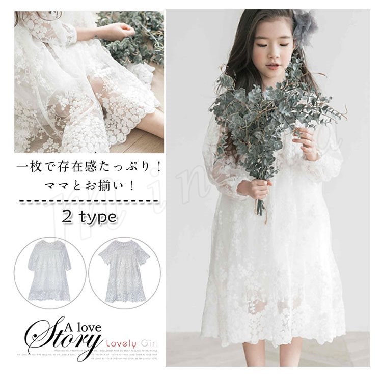 子供服 子供ワンピース キッズ 女の子ワンピース ママワンピース 7分袖 白 マキシワンピース オシャレ 可愛い ピアノ発表会 110/120/130